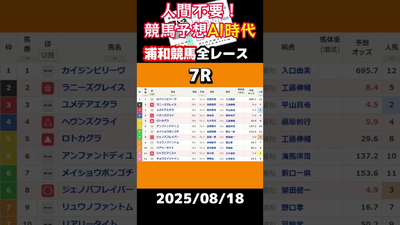 【AI競馬革命】もう人間予想は過去の遺物!勝つのはAIの時代だ【浦和競馬08/18(月)】#競馬予想 #浦和競馬 #地方競馬予想