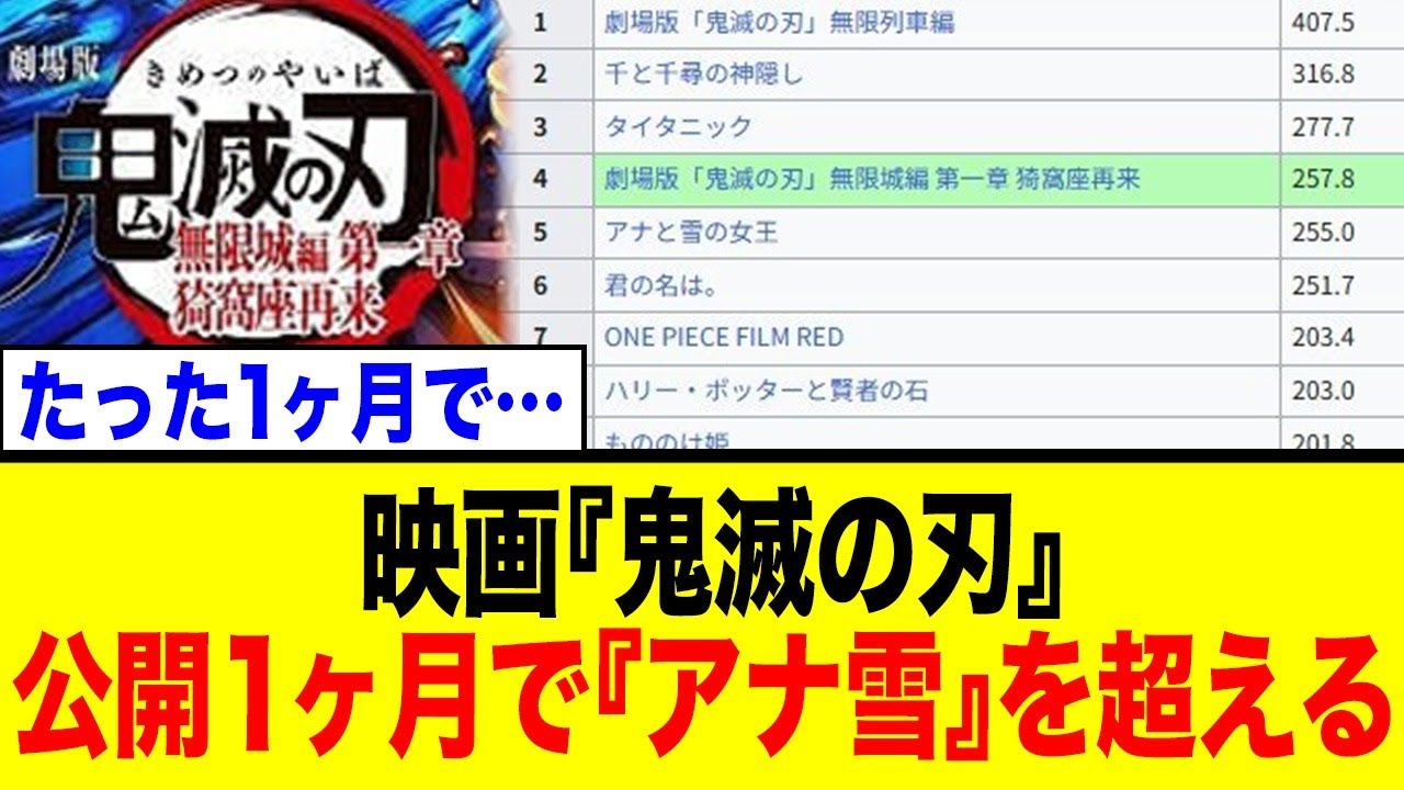 この動画では、「アナと雪の女王」や「君の名は。」といった国民的ヒット作を抜き去った驚異的な記録の詳細を徹底解説。