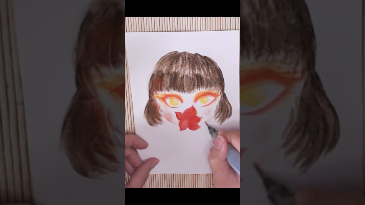 I painted this Japanese-style girl in watercolor during a live stream