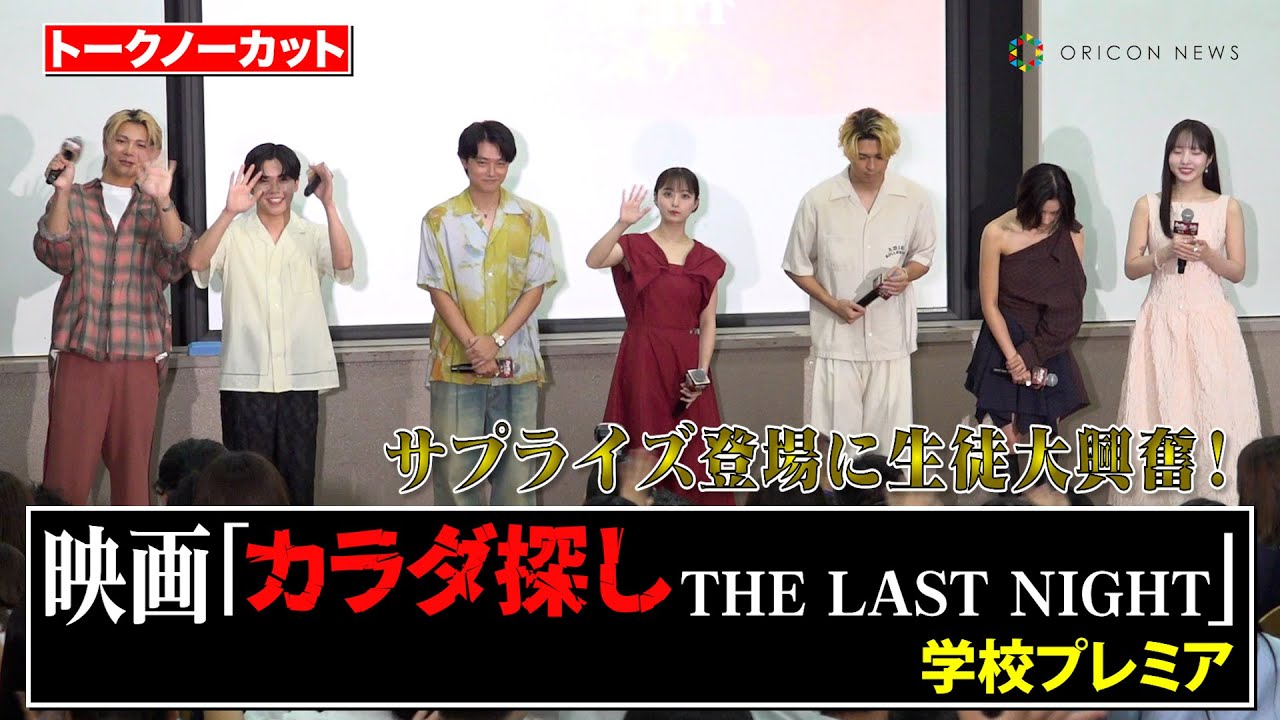 俳優の橋本環奈、眞栄田郷敦、櫻井海音、安斉星来、鈴木福、本田真凜、吉田剛明が26日、映画『カラダ探し THE LAST NIGHT』学校プレミアに登壇した。
