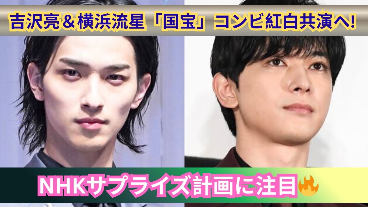 NHK紅白歌合戦に向けた“サプライズ計画”が話題に!昨年はB’z初出場で注目を集めた紅白ですが、視聴率は苦戦。今年はさらなる目玉として、映画『国宝』で共演した吉沢亮&横浜流星の「国宝コンビ」をステージで再び共演させる案が浮上しています。横浜は現在大河ドラマ『べらぼう』の主演を務めており、吉沢と共に紅白司会・ゲスト審査員の候補に名前が挙がっているとのこと。さらに、映画『国宝』主題歌を担当したKing Gnu井口理の出演の可能性も…!大晦日に実現するかもしれないNHKのサプライズ計画、その全貌と期待を徹底解説します。
