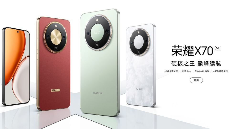 項目内容発表日2025年7月2日価格6999元(約18万5000円)からチップセットQualcomm Snapdragon 8 Eliteディスプレイ(イン)7.95インチ2352x2172ピクセル、120Hz、5000nits (アウト)6.43インチ2376x1060ピクセル、120Hz、5000nitsリアカメラ画素数5000万広角+5000万超広角+6400万3倍望遠インカメラ画素数(イン)2000万(パンチホール)+(アウト)2000万(パンチホール)RAM/ROM構成12GB+256GB、16GB+512GB、16GB+1TBバッテリー6100mAh、66W充電(有線)、50W(無線)5G NR対応バンド非公開サイズ156.8 x 145.9 x 4.1mm(白のみ) / 4.2mm、156.8 x 74.3 x 8.8mm(白のみ) / 9.0mm。217g(白のみ) / 222g8300mAhの巨大バッテリー内蔵、HONOR「X70」