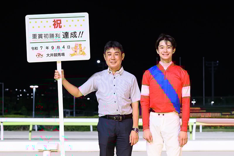 東京シティ競馬(TCK)に所属する吉井 章騎手は、本日(9/4)行われた大井競馬第11競走「第6回 ゴールドジュニア(SⅢ)」において、1番ゴーバディ号(1番人気・的場 直之きゅう舎)に騎乗し重賞競走初勝利を収めましたので、お知らせいたします。