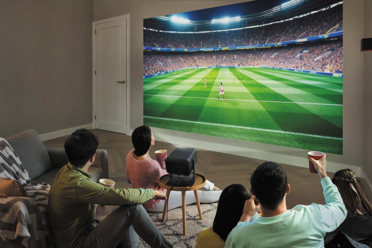 SPEC●投影方式:DLP●光源:RGB3色レーザー●明るさ:500ANSIルーメン●解像度:4K●投影サイズ:40〜100インチ●OS:webOS●サイズ/質量:W110×H160×D162.3mm/約1.9kg