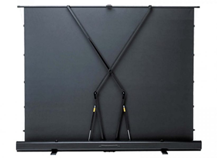 短焦点・超短焦点プロジェクター対応の100インチスクリーン。床置き式で場所を選ばず設置ができ、ケース一体型なので収納もしやすい。アスペクト比:16:9、材質:マット系