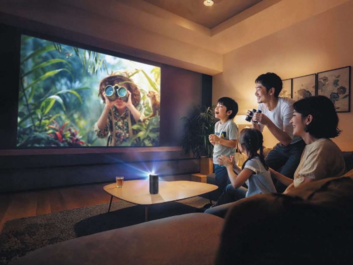 世界初の「縦型投影機能」を搭載し、スマホでミラーリングした縦型動画やSNS映像を縦比率のまま再生できる。TikTokやInstagramリール、YouTubeショートなどを大画面で投影可能。通常の16:9の映画やテレビも楽しめる。