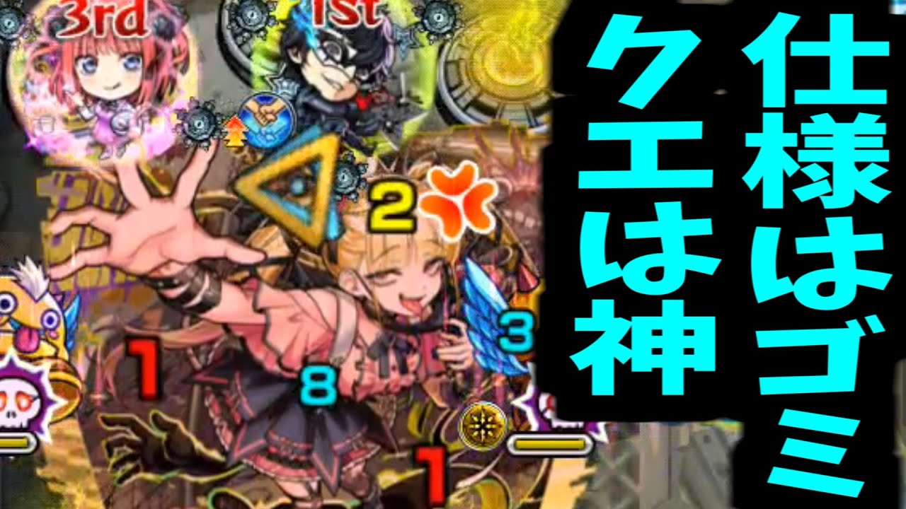 えー、今回はですね、本日からやってき ました我々トラウマクエスト長究極ケツ第 2弾。これをね、やらせていただこうと 思います。で、今回はバトルカード15枚 配られてますよということで、ま、 とりあえず石は使わなくても15回の挑戦 はできるようになっておりますよと。で、 どこだ?もう降臨時間なんだけど。ん 。あ、いた、いた。こんなところに。で、 えっと、これ 前回私は1枚、1枚のチケットで、ま、 一旦様子みしようってやってました。でも 今回は仕切りません。初見、初見から5枚 で行かせていただこうこと。やっぱこの 比率感がね、やっぱ楽しいところであっ たりするみたいな話もあったりするから、 今回の編成はね、これで行かせていただき ます。で、ま、ジョーカー使って、コナキ 使って、で、1体ちょっとやっぱギミック 対応じゃないキャラもワンチャン使えるん じゃないのか。ま、今回のギミックは地雷 と床なんですけど、ま、さすがにね、闇 属性で縛って、地雷床で縛って適正狭な中 でいや、運営さんもそんなガッチガチには せんでしょと。床ちょっと、床ちょっと ぐらい無視してもね、戦えるでしょという ことでやらせていただこうかと思います。 ま、アイテムは全ぶパ。そしてあとは1体 ね、降臨のリズムを組み込まさせて いただきまして、もうちょ、そう、やめて 。分かってるからそこでちょっともう1回 言わないでリズムでね、ある程度降臨 キャラでも戦えるんだぞっていうところも 合わせて見せていこうかなと思います。 これ本気でやるわ。 さあ、どういう感じのクエストか。うお、 意外と多い。あ、でも靴多いな。あ、 うんボ。うん。やり直して。ま、いいや。 ま、いいや。今回負けられない戦いがここ にある。えっと、大体モンストさんがこう いう闇と光のドを用意した時は大体、ええ 、ま、大体闇が、え、これ倒したらダメな 方かもしかして。 ま、それか大体ね、あの、え、 大体あれなんだけど、あの、光の方を後に 倒した方がいいよみたいなパターンが多い んだけど。あれ?このルートから。え、 このルートから。ん、このルートから最後 にあれ、このルートから最後に闇ってどう 、最後に光ってどうすんだ?これでなんと かなるか。はい。 ワンパン。ワンパン。多分これで。よし。 オッケー。完璧。あ、そうだね。やっぱ 防御ダウン最後に倒すとそうだね。闇で 倒すと防御ダウン。あ、そうだね。闇で 防御アップ。光で防御ダウンだね。 ちゃんとこういう風にやれれば問題あり ませんよと。で、おお。あ、楽でいいな。 そしたらこれでだからじゃあこれで縦かん でほい。で、これで防御ダウンを維持 できる。あ、でも殴りは普通に届くな。 あとは防御ダウンの継続かな。ま、次2の はあんまり動けないんでそこで、え、 ちょっと待って。これ即死とかないよねえ 。即死とかないよね、これ。え、これ即死 とかないよね。ここでおい。 うん。ま、これで止まっちゃう。この防御 ダウンがあ、消える。え、ま、大丈夫? これちょっと待って。え、これ大丈夫?え 、これ大丈夫?え、これ大丈夫?縦かんで 。いや、縦かんん。いや、縦かだな。縦で ずれてって。 おい。え、これ即死ないよね?これ即死 だったらちょっと運営さんのいやらしさ、 いやらしさを疑うんだけどさすがに。え、 さすがによねえ。さすがによね。 ほぶね。さすがさすがにね。そんなバトル カードでキワッキワの戦いは運営さん さすがにせんでしょ分かってありがとう ございます。はい。運営さんにも心があっ た。これが心か で普通に戦えていきましたよと。危ねえ。 ま、でも2ノがいるからSSはまあ割と 回転率いいんでバウンドチャージあるから それなりの速度で使ってってもまあいいか な。あ、チェルナバグ。おお。だからここ もしっかりと闇属性を1番最後に倒して いきたいんだけど。うーん。ま、普通に Vジで多分スピードアップ2の分もある から靴もあるし多分届くっしょ。はい。靴 。よし。オッケー。で、最後にあ、ダウン 。はいはいはい。まあ2枚パネル取って こんなもんか。 2ノバフも入れたいんだけどな。まあ、 ちょっと今これ床に乗ってっから。そうだ 。床乗ってっから触れられねえんだよな。 あ、ちょっと待って。マターンやらないと いけないってことは2のいるとさ、これ2 のいるとさ、防御ダウンできないターン 作られるんじゃないの?うわ、無理。むむ 。無理です。これ終わりじゃん。うわ、 使えねえ。おい、床キャラどうすんねん、 これ。また帰ってきちゃった。え、SS 使ったところだよな。どうすっかな。縦感 で、ま、縦感で倒さないようにするじゃ ええか。で、下の靴を倒さないで。 これでよし。これで倒す。じゃ、あいつら はま、倒さんと思うから。はいはいはい。 あ、いい。あ、いい、いい。すごい。あ、 でも火力は結構出せるな。むしろこれで 敵力が発動して意外といけるかもしんない 。で、ジョーカーはま、靴ぶん殴りながら でいいんで