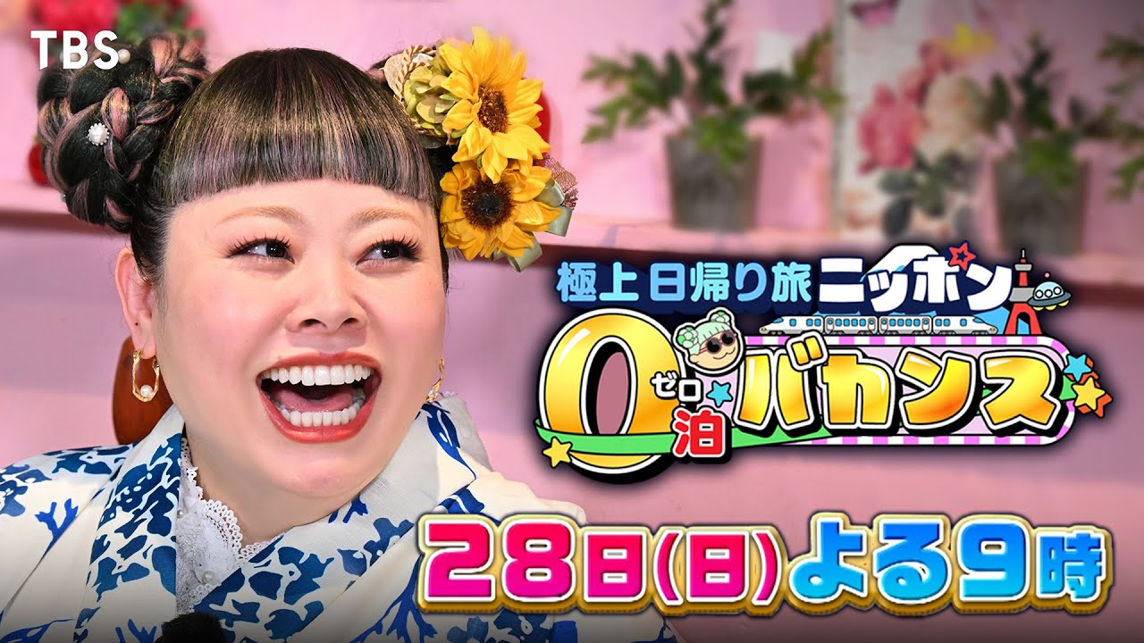 TBSでは『渡辺直美のニッポン0泊バカンス』を9月28日(日)よる9時から2時間にわたって放送する。