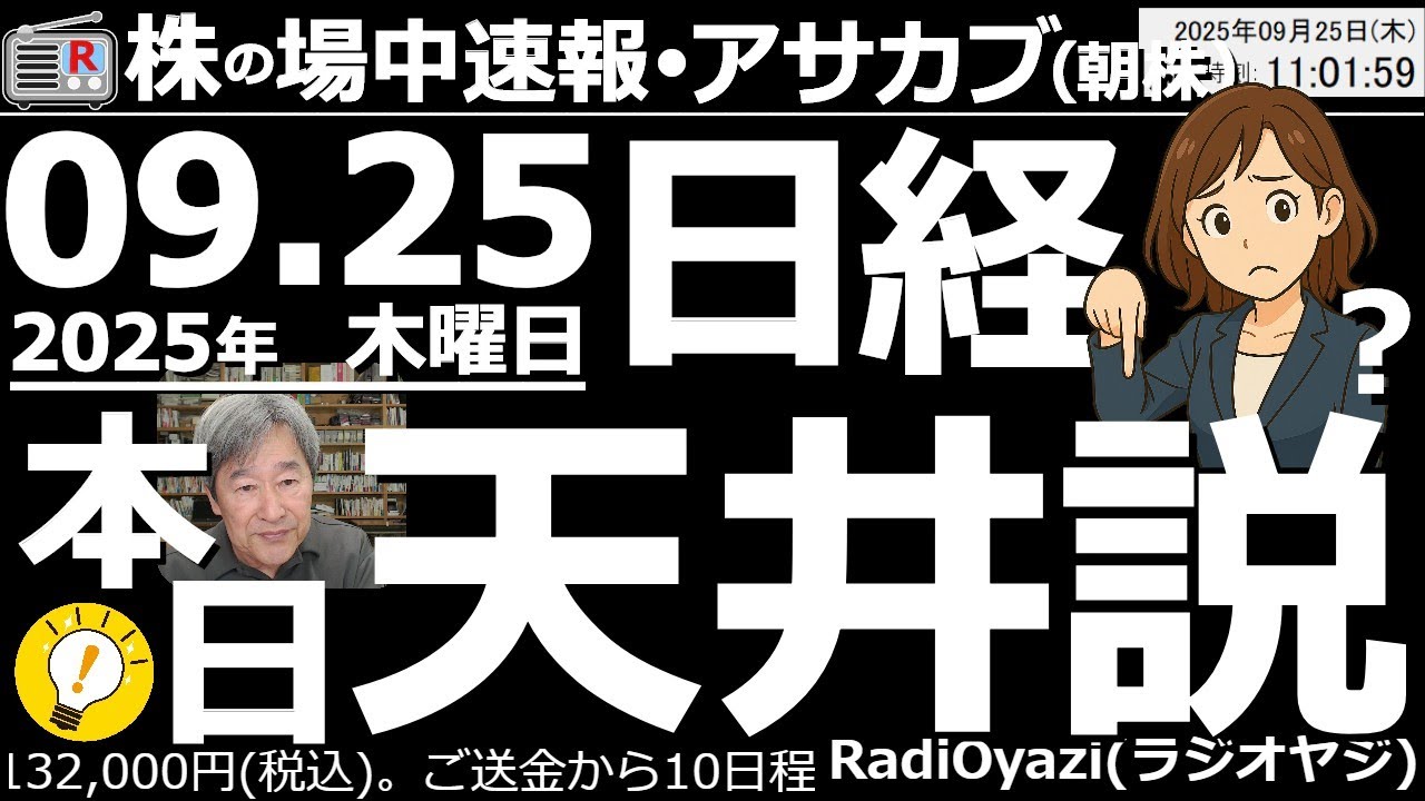 【投資情報(朝株!)】今日が日経平均の目先天井(ピーク)になる!ラジオヤジがその理由をテクニカルで解説。説得力ないかも?(笑)●買い検討銘柄:9983ファストリ、7974任天堂、6098リクルート、他