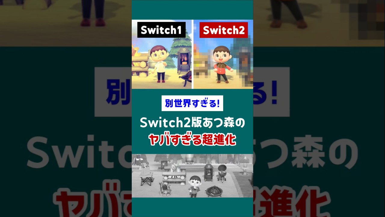 別世界すぎる!Switch2版あつ森のヤバい進化【小ネタ】#あつ森 #あつまれどうぶつの森 #NintendoSwitch2 #switch2 初代NintendoSwitch版の 集まれ動物の森で家具が密集したエリアに 向かって走ると [音楽] このように処理速度が追いつかず家具が 若干遅れて表示されてしまうことがよく ありました。では、性能やパフォーマンス が向上したNintendoSwitch 2で同じ場所を走ってみると、 [音楽] 数が1つも消えずめちゃくちゃ改善してる 。 GamegamingNintendoSwitch2Switch2あつまれどうぶつの森あつ森ゲームゲーム最新情報