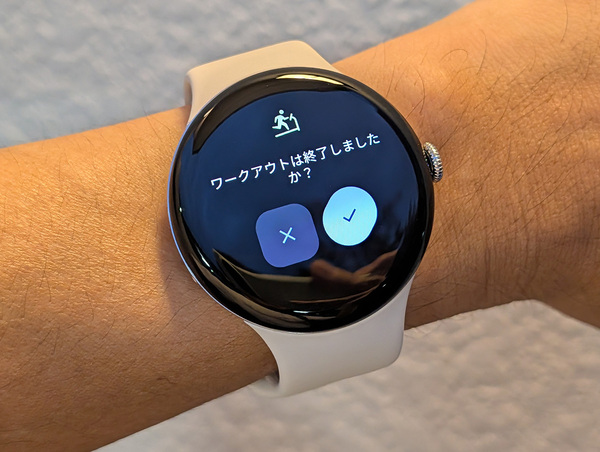 グーグルの説明によると、自動アクティビティ検知が対応する種目はランニング/ウォーキング/サイクリング/フィットネスバイク/エリプティカル/ローイングマシンなどで、ワークアウトを始めてから15分後に自動計測が始まり、終了後1時間の間に記録を止め忘れていると通知が届きます。筆者もランニングとウォーキングで試しましたが、だいたいグーグルの説明通りでした。