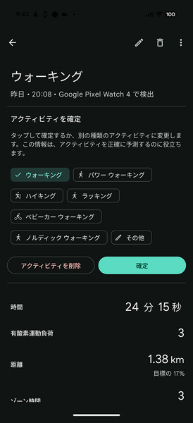 Pixel Watch上でのアクティビティ記録を忘れてしまっても、Fitbitアプリが忘れていたアクティビティの記録を後から残せるように提案してくれるところが、アップル側にはないグーグル側の良いところです