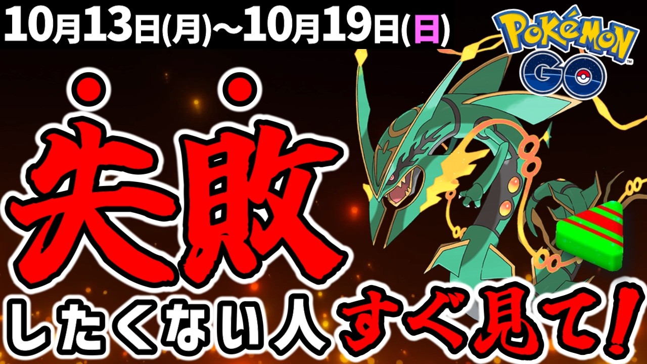 [音楽] こんにちは。こうです。今週は激な最強 ポケモンメガレックザ登場来週以降の イベントについても軽く話していきます。 どこよりも分かりやすく解説するので是非 最後までご覧ください。 10月18日土曜日の14時から17時 メガレクーザのレイドデイ開催。先週の 動画でも軽く話しましたが今回はじっくり 行きます。まずメガレクーザがどれくらい 強いかと言うと攻撃377防御210、 HP227、最大CP6548のドラゴン 飛行タイプ。飛行が二重弱点の マッシブーンレートではシャドウを含めて 最強。2位がメガ進化してないレックーザ となってますが、このメガレックーザと レックーザの力の差はものすごいです。 1人で戦う場合、フル強化の メガレックーザでマッシブーンを倒すのに かかるのは平均221秒。レックーザだと 294秒になります。ちなみに3位の シャドウボンダは311秒となってます。 ボスの制限時間は300秒なので メガレックーザ以外だと恐風ブーストなし では1人で倒せないかもしれませんね。 そしてドラゴン技にしてパルキアリードで 使えば金差で無限大ナには負けるものの2 位です。これは2人で戦った場合の秒数 ですが、その差は平均5秒ですね。ま、 無限ダイナをフル強化できてる方は おそらく1%もいないのでほとんどの方の 手持ちでメガレックーザが最強になるはず 。また現在シャドウレックーザは実装され ていませんが、実装された場合はメガ レックーザと通常レックーザの間くらいの 強さになると思います。そろそろ坂木様が 連れてきてくれるはずなのでシャドウ レックザの登場を楽しみに待ちましょう。 またレックザをメガ進化させるには限定の 火量転生が必要ですが、火量転生を覚え させるにはアイテムの隕石が必要なんです ね。この隕石は今回タイムチャレンジで もらえるようです。ただ隕石を何個 もらえるのかは書かれてないので不明です 。以前メガレックーザが登場した時は レックーザをゲットした時に一定の確率で 隕石を持ってたりしたので今回も同じく 追加で隕石が手に入る可能性もありますね 。また現在隕石が余ってる方はシャドウ レックーザのために何個か取っておき ましょう。もしもシャドウは我良転生覚え られないなんていう設定になっていれば 取っておいても仕方ないんですけどね。 それと一度画量転生を覚えたレックーザ さんも間違えて他の技に変えてしまうと メガ人化できなくなります。その場合は また隕石を使うことになるので気をつけ ましょう。そしてこのイベントで発生する ボーナスはジムからもらえる無料パスが プラス5枚、リモート上限が20回に増加 の2つとなってます。無料パスはいつも もらえる1枚プラス5枚なので合計6枚 もらえます。前日の分を使っていなければ 無料で最大7回参加できますね。また リモート上限が解放されるのは18日 土曜日の9時から19日曜日の昼12時。 つまり土曜と日曜で20回ずつリモート 参加できますね。海外のフレンドがいる方 はここでガチってみるのもいいと思います 。そして700円のチケットを買うと さらにボーナスが追加されます。無料パス がさらにプラス8枚。レイド勝利時不思議 なアメXLをもらえる確率アップ。レイド 勝利時のXP1.5倍。レイド勝利時の砂 2倍。無料パスは通常の分と合わせて合計 14枚もらえます。このチケットは フレンドにプレゼントもできるので しっかり参加できそうな方にあげれば喜ば れると思います。また自分で買う場合は ウェブストアで買えばプレミアムバトル パスが1つついてくるのでお得ですね。 さてメガレクーザの弱点は岩、氷、 ドラゴン、フェアリーの4つ。この中で氷 が二重弱点なのでとてもよく聞きます。 特に強い対策ポケモンはこちら。ウリムー ならたまに野生で見かけるので進化させれ ば5位のマンになります。またEVを アイスルア近くで進化させれば6位の グレイシアになりますね。詳しくは概要欄 にあるEV進化の解説動画をどうぞ。 そしてシャドウが入るとランキングはこう なります。氷を使うロケット弾しっぱから シャドウリムーが出るので、今からでも シャドウマンムーは準備可能ですね。 しかし今はや当たりを消せないので技を 解放することになります。また目覚める パワーが氷ならシャドウレジガスも強い ですね。氷タイプには強いメガ進化がい ないので1番強いメガ進化は7位の メガレック座になります。ちなみに メガレックザは強いポケモンがいればなん とか2人で勝てます。パーティーの例とし てはホワイトキュレムとブラックキュレム を合計6体フル強化。それで大親友と パーティーを組めば12回くらい回復を 挟んで勝てそうです。ただメガレクーザは 攻撃力がぱねえのでゲージ技は全部回避し ないと小人数で勝つのは難しいかもしれ ません。この時期は雪の天候ブーストには 期待できませんがチームパワーを使えば 少し楽になりますね。早く倒さないと あまりメガエナジーをもらえないので、 確実に倒したい方やメガエナジーを集め たい方