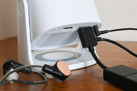 スピーカー内蔵のためプロジェクター単体で映像と音声の両方が再生できるが、音声を外部機器に託すと視聴体験が向上する“大画面の入門モデル”として価値が見出だせる