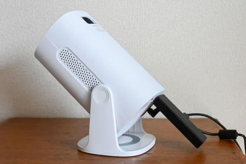 スタンド一体型のため、設置位置に応じて投影角度を調整できる。90度上向きにすれば、天井投影も可能だ
