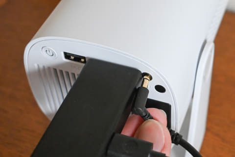 接続するデバイスやケーブルによっては、3.5mm端子に干渉して接続ができない実際の映像をチェック。明るさは控えめだが色再現は健闘