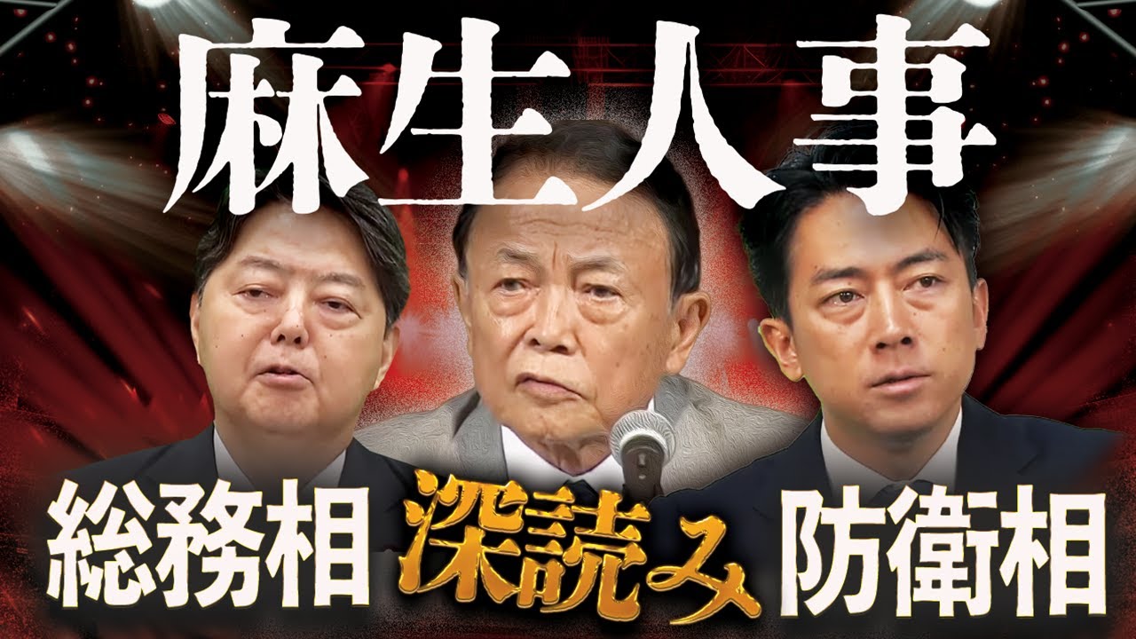 [音楽] 皆さん、こんにちは。鮫島タイムスです。 次の総理は高一たか。主漢使命のに関心が 集まる中、自民党内では早くも高一内閣 誕生を見越して閣僚人事が飛び換え始め ました。外務大臣はモ木俊光総務大臣は 吉義吉正防衛大臣は小泉慎郎読売新聞は 総放じています。人事権を握るのは もちろん麻生太郎自民単独の高い政権に なっても自民と国民の連立の玉巻き政権に なっても人事を握るのは俺だ。読売り報道 からは麻生さんの人事構想がくっきり 浮かんできます。今日はキングメーカー 麻生太郎が描く新権の行方をズバーり改正 します。読がモ木外務大臣、林総務大臣、 小泉防衛大臣という人事案を報じたのは 10月14日でした。キングメーカーの 麻生さんの移行を確認しなければ今回の 人事は報道できません。つまり麻生さんも この人事を了承していると見ている。 むしろ麻生さんがあえて人事案を漏らした 可能性さえあります。維新国民の野党3党 が主名に向けて統一候補の調整を進めて いるさ中。さらに公明党が野党の当手に 投票する可能性もありうると立場を変えた 直後です。主安市名に向けて緊迫が高まっ ているこのタイミングで麻生さんが人事 構訴を流した理由は一体どこにあるの でしょう?1つは麻生さんが国民民主党や 維新の感触を裏ルートで掴み、主使命で 立憲維新国民の3党が揃って統一候補を 担ぐことはありえない。そんな手応えを 感じたことです。つまり多政権誕生に自信 を深めたと言えるでしょう。そうなると次 は内閣の人事になる。来週臨時国会が証集 され、石内閣は掃除し、主犯指名選挙が 行われる。新しい総理大臣が占されたら 直ちにその後閣僚人事を行い、夜には 新内閣を発足させなければなりません。今 から人事の骨格を固めておかなければ とても間に合わない。もう1つは緊迫する 主選挙前に閣僚人事が始まったという メッセージをあえて当内に流し麻生さんの 急心力を高める狙いがあります。漫画1に も自民党内から増犯の動きが出てこない ようには早と人事の調整を始め当内の目を 主犯指名後の閣僚人事に振り向ける。それ では総裁選挙につばしたモ木さん、林さん 、小泉さんの人事を個別に分析してき ましょう。すでに決戦投票で高一指示に 回った小林高幸さんは自民党の成長会長に 抜擢されました。同じく決戦逮捕で高一 指示に回ったモテ木さんは本人の希望で 外務大臣が有力です。前回のトランプ政権 との貿易交渉を担いネゴシエーターとして 評価されたモ木さん。ここは外務大臣とし て太米交渉でさらに実績を上げもう1度 総裁戦にチャレンジしたい。麻生さんは 高い政権の両脇を自分と木さんの2人で 固めるつもりです。麻生派が当運運営を 取りし切る幹事長を取る代わりに旧モ木派 には内閣の金辺である官房長官のポストを 渡す。それが麻生人事構想でしたけれども 表木さん自身は官房長官には興味を示さず 外務大臣として世界を飛び回った方が最大 の弱点である国民人気のなさを補える。 そう考えたんでしょう。一見維新国民公明 が主犯使命で結束した場合、高井さんは 主犯使命で勝てません。麻生さんはその 場合高一立を諦めた木さんを代わりに担い で野党共闘を崩す作戦を温めてきました。 この場合高井さんは副総理外務大臣が有力 されていたけれども表木さんを外務大臣に 固めたということは高井さんのままで主漢 使命は逃げきれる。つまり野党4等は要立 でまとまれない。麻生さん、そう読み切っ たのではないでしょうか。国民が立憲と 組めば維新が自民によってくる。維新が 立憲と組めば国民が自民によってくる。 両方とも立憲と組むことはありえない。 麻生さんそう踏んでいるんです。閣僚人事 最大の焦点は総裁戦の負け組となった林 官房長官と小泉農水大臣の処遇です。自民 執行部は副総裁幹事長、総務会長を麻生派 で固めた。さらに旧モ木派安倍、小林陣営 で当工房をがっちり固めました。林さんや 小泉さんをした石総理、岸田前総理、菅本 総理、そして森山前会議長は完全に失客。 林陣営と小泉神営から当部への起用は0 です。林さんを支えた自民党税長の ラスボス宮沢洋さんは税長会長を外され ました。自民党内には不穏な空気が広がっ ています。そこへ公明党が連立を離脱。 公明審判の菅さんや森山さんは公明党と裏 で通じ合い麻生体制に揺さぶりをかけて いる。麻生さんとしてはさんと小泉さんと いう総理候補は確内に取り込んでその動き を封じ込める必要があります。問題はこの 2人が受けるのかどうか。林さんは総裁 選挙の後、次の総裁戦に向けて地方を回れ なくなるようなポストは受けない。そんな 意向をめ化していましたけれども、いざ ポストを提示されてそれを拒否すれば東内 野党を宣言することになる。本当に拒否 することができるのか。さらに総務大臣と いうポストが味噌です。本命の小泉政権が 誕生していたら維新との連立が規定路線 でした。維新が求める福首構訴を進める 