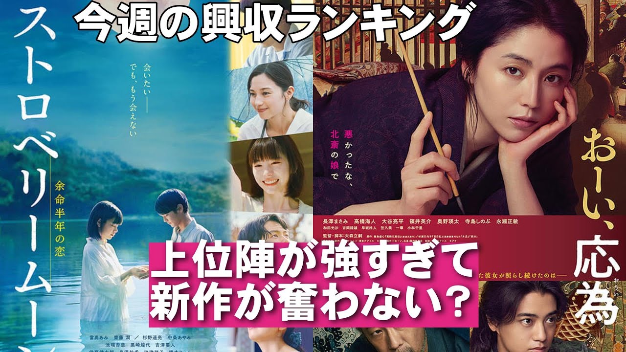 [音楽] [拍手] どうも皆さんこんにちは。ミステリー作家 の七尾よしです。オルテ映画速行第343 回第1部ということでオルテ映画速ですね 。第1部では今週の映画国内映画工業収入 同員数ランキングと、え、全米工業収入 ランキング、え、あと国内ミニシアター 工業収入導するランキングを、え、お伝え して、え、皆さんと一緒にエンタメの トレンドについて語っていきたいと思い ます。ということで、でね、あの、今日 これが1本目の動画になりまして、え、実 はね、2本目の動画ももうアップしようか なと思ってるんですけど、それがですね、 ミーガン2.0。え、今日10月21日 から、あの、Amazonプライムで配信 スタートしまして、あの、日本ではね、 あの、劇場公開がスルーされてしまって 配信になっちゃったんですよね。で、今 ちょっとね、見終わったんですけど、いや 、これがね、いや、すごいことになって まして、あのね、動画はね、もうちょっと 後に作ろうかなと思ったけど、これ早めに 出した方がいいかなと思って、ま、 ちょっとね、なんか思ってたのと全然違 うっていうか、えって感じなんで、あの、 レビュー動画この後ねあげたいと思います ので、え、気になる方是非ですね、 チェックしてください。で、これ多分また ね、明日になると思うんですけども、え、 俺映画速報の第2部ですよね。30、 343回の第2部を明日お届けします。え 、第2部では今週金曜日からスタートする 新作映画の紹介、全部と全部のね、前作 紹介とあと映画にまわるニュースをいくつ か皆さんにご紹介したいと思いますので、 明日もよろしくお願いいたします。もしか したら明日もね、え、1本映画レビュー するかもしれません。はい。というわけで 、え、10月17日から19日までの国内 の工業収入。え、ドインスランキングは 工業通信者より発表されましたということ ではい。今ね大体こんな感じになってるん ですね。ま、上位に動きはないですね。で 、新作が、え、アンド3ということでね、 え、新作が3作品入ってますということで 、え、1位がですね、強いですね、これ。 変わらず劇場版チェンソマレゼ編が週末3 日間で同員37万5000人、講衆 5億8200万円を上げて5週連続で1位 をキープしました。え、累計成績は同員 426万人、講衆65億円を突破してい ますということではい、チェンソーマン 強いですね。いや、65億円ということで 、もう大ヒットも大ヒット。これ、この 流れから行くとなんか100万円、 100億円もね、なんか狙えそうな勢いが ありますよね。ま、実際どうかって ちょっとわかんないんですけど、今、え、 何周目?5周目ですよね。5週目で、えー 、週末3日間で約6億円だから、ま、 9億円ぐらい、1週間で大体9億円ぐらい 稼いでるとすると、 えっと、今65億だからうーん、なんかね 、100億円なんか行きそうなですね。 なんか行くんじゃないかな、100億円。 またあの 入場者得典とかなんかこう、えー、舞台 挨拶とかイベントを組んでいけば 100億円行きそうな感じがしますよね。 ま、当然ね、続編もあるでしょうし、これ はね、すごいことになってます。今年はね 、とにかく本当に工業収入、今年の映画 工業収入、特に東方さんですよね。 とんでもないことになってますね。最終的 に今年のこの東方の工業収入ってどの ぐらい行きそうなんですかね。はい。と いうわけで、え、2位がこちら秒速5cm ということなんですけども、えっと、 これは先週も2だったんですよね。で、 週末3日間で同員19万8000人、講衆 2億8300万円 を記録。え、累計成績は同員71万人。は 10億円を突破しました。ということで、 こちらももうね、大ヒットというか、 まだまだね、記録を伸ばしていきそうで、 まあ、当面20億円は行きそうな、 十分行きそうなね、え、勢いがありますね 。ま、秒速5cmの実写版が、ま、ここ まで大ヒットするとはね、ちょっと なかなか予想がつきにくいというか、ま、 これね、大きくこける可能性もあります からね。うん。魔女の卓球便の実写版もね 、あれどうでしたっけ?あれこけたんじゃ なかったっけ?で、秒速5cm。ま、 アニメはね、かなりこう熱狂的なファンも 、え、ついてるとは思うんですけども、ま 、これね、あの、アニメ版を実写化して どうなるかなと思ったんですけど、 まあまあまあ、あの、ま、結構エモい。ま 、ちょっとね、鬼エモですよね。なんか エモき違いって感じ。エモバカっていうか ね、もうエモいバカって感じですよね、 なんか。うん。なんでこんなにエモくする んだってぐらいエモくしてますよね。ま、 でもそれが結果的に良かったということで 、ま、多くの人たちの共感を得られたと いうか、ま、評価もね、映画としての評価 もなかなかに高いということで秒速 5cmぱ松村北斗さんも良かったんだけど 、いや、個人的にはね、やっぱり森ナさん が良かった。ま、結構ね、レビューとか 見ると森ナさんがね、すごく良かったって 言ってる方すごく多いですね。確かに僕も ね