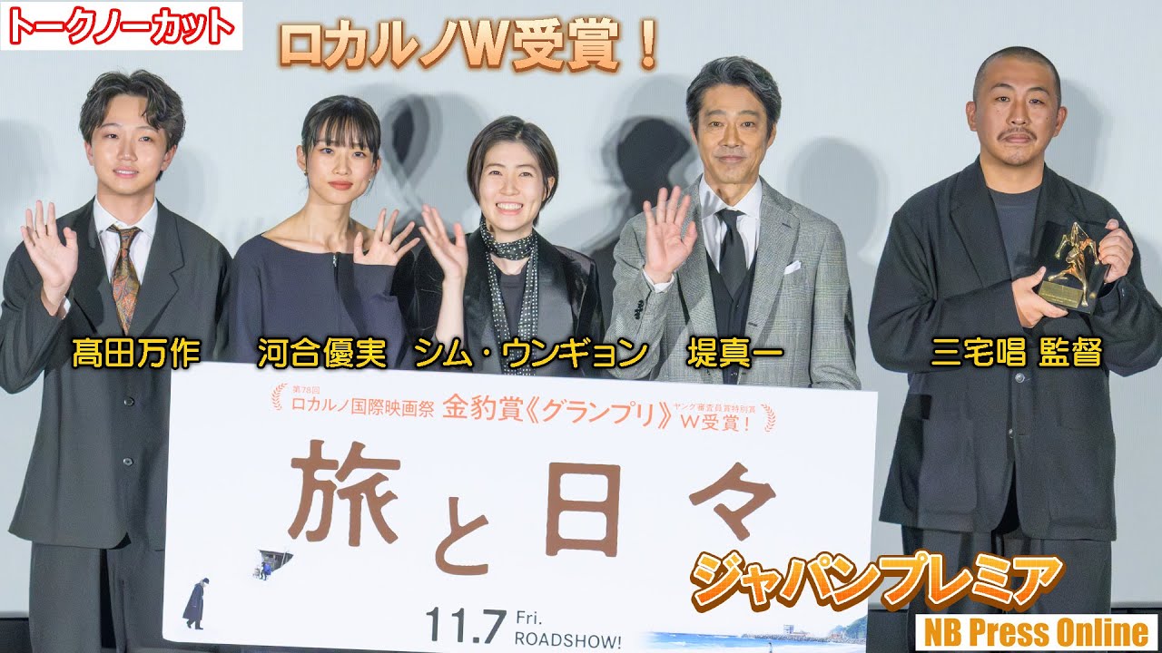 2025年10月22日、TOHOシネマズ 六本木ヒルズにて、映画『旅と日々』舞台挨拶付きプレミア上映が行われ、シム・ウンギョン、堤真一、河合優実、髙田万作、三宅唱監督が登壇。