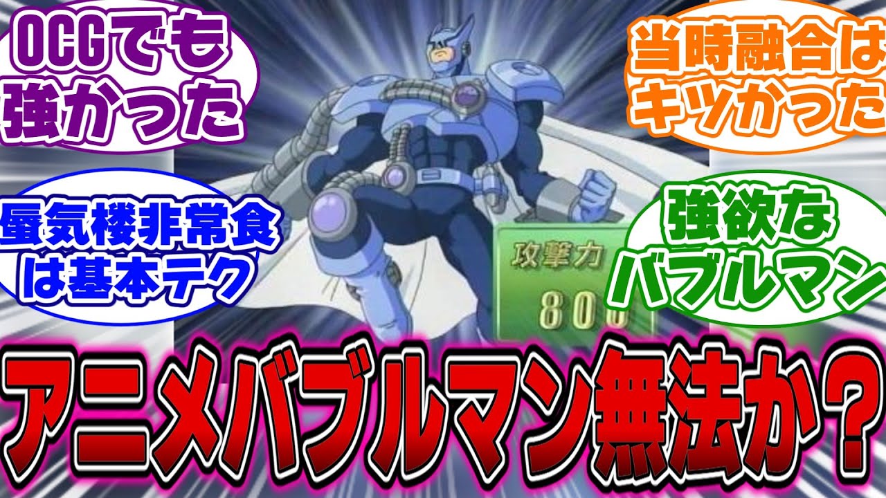今回はアニメ見直してて思ったんだけどさ 、に対するデュエリストの反応を紹介し ます。CX見てたら10代が流れるように 都合アニメバブルマン新キを前期で非常と かやるから笑ってしまう。基本的だからな 。ナミ当時リスワードの塊だった融合を 使うからな。それがないとやっていけ なかったからな。アニメ版バブルマンとか 行かれたカード。強欲なバブルマンとか いう相性。本当好き。 強欲なバブルマンだからな。モバも手札もゼロの状態から略転撃するの好き。 さすがに中盤以降は禁止カードは使わなくなったがアニメバブルマンホープオブフィフスは普通に最後までやる。 そもそも制限だったしツも施しも 死者蘇生が禁止になったら別のカードが使われ出したりなんか面白いよね。 GX やばいぜってところでドローで作った後に強欲な壺を発動。 バブルマン召喚悪夢の新起を発動。俺はカードを伏せてターンエンドだっていうの見るとなんで貯めたんだよ。てなる。ふ。飛者蘇生なんてどうだ?て言ったのは優勢か。 適当に検索したらで押すって召喚特殊召喚含めて 59回も出されたんだな。 あいつ恐ろしいのは1 番最にくい。デッキに戻るが何度もあったのにデッキに戻ったデュエルでは必ずサイド召喚されてる。 ドロー力すごすぎる。ついでのようにワンドロー効果がついてるカードたち。マキシャンってマジでそのままで OCG したんだなって思った。あの戦闘破壊された時のドロー効果はおまけでつけたのかと思ってた。 テイクオーバーゴが落ちも含めてとんでもないカードで笑ってしまう。デメリットがあるとはいえ性の張り中はやばいって。初てバブルマン召喚にドローから入る回があってそれはずるだろってなった。 [音楽] [音楽] これはバブルマンを召喚。2枚ドロー。 バブルショットを装備。ターンエンドだ。 あのくらい手札を無理やり増やして消防 運ロー先定でやっと動けるヒーローが パックのコーレアにずっといたと思うと 当時は恐ろしい時代だった。子供はアニメ で登場したキラカードが大好きだから許し てほしい。Cho以降のレアリテ配分は リアリスト。子供が組めないコーデッキ だったろヒーローってそして大して強く ないしスパークマンとワイルド満軸で やっと戦えるって感じだったし当時の記憶 だと割と最力多かったのから3年はそこ までスパークかワイルド軸と話にならんの は本当にそうさらに言うと属性費用出て くるとそいつらだけでよくねてなる問題も 敵も味方も強欲な壺使いまくるの面白いよ ね。1番笑ったのは10代よりアかダな壺 契約の理行を引いてい素性速発動の流れが ひどすぎる。どのキャラもなんか めちゃくちゃ低いテンションです。ん鉄よ ね。2期の強欲なツ率の高さはすごい みんな困ったら都使ってる。5DSまでは OCG化したアニメカードはOCGと同じ 効果になるのが2冷だったのにバブルマン だけは知らぬゾンゼヌで押し通したの本当 に笑うヒーローは正直手札消費激しいけど エアマンのおかげでなんとか使えたし 使い物になるか怪しかったからアーマン 投入された気もするがアニメ融合ヒーロー でも ダークブライトマンとプラズマイスマンは 妙にカード高いよね。こいつらはアニメ3 年目に追加されたカードなのといつもの スパークマンさでありがたかった。 フレイムイングマンはLP4000ルール だと結構脅威だからな。2回殴り勝てば 相手は死ぬ。Uエルリンクスでオートで やってたらNPC10代に燃やされました よ。ネクロックマン、エッジマン、 スパークマン、ワイルドマンあたりで 組み合わせたやつらはだいぶ有なのが多い 印象がある。こいつら自体の単体性能も 当時のヒーローとしては高い方だし。 クロダークはアニメ内だときてから出番露骨に増えた。 舞台がれるアカデミアなのもあって、当時のカードをうまく使ってたよね。バブルマンのドローに全てをかけた水ヒーローデッキは使ってて楽しかったな。積極的にぼちこやしと手札を老費するプレイイングしてたからドロー効果を使い回せたりデスティニードローボっこができた。アニメヒーローはそいつ専用魔法とかすごく多かったな。 [音楽] GX 時代ってヒーローがのき涙カレアリテを占してたんだよな。 よく売れたもんだな。しぶくカオスが生き残ってたから光か闇かで振いかけられてたよね。ジャギーマン沼ちマンプラズマイスは比較的優秀だった。 [音楽] アニメヒーローで唯一環境に顔を出せたのがバブルマンぐらいか。 レインボーで押すにプリクリズマ ヒーローじゃないけどアクアドルフィンとモぐらも有能だったカードガンナーやマジックスライカーやネクロガードナーも [音楽] 閉じくった目で見るとコスパ悪い10 台デッキを回すためにぶっ壊れカードが何枚も入ってるからダンディライオンもその辺りの部類がないと話も回らないからな アカデミーってだけあってみんなちゃんとしてるってのは分かる 10 代のデッキ冷静に考えて自己率打開始なドローソース効果あるカード最 から最後