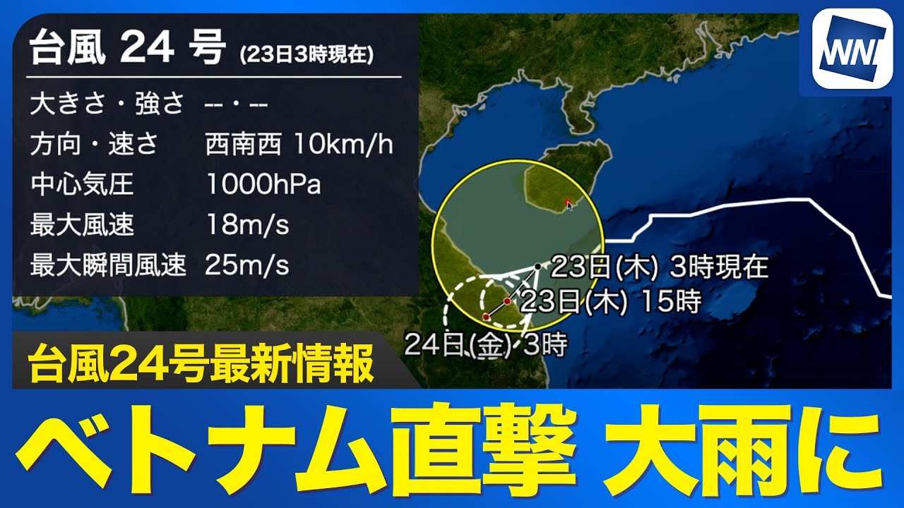 【台風24号最新情報】ベトナム直撃 現地は大雨災害に警戒/日本には影響なし 今日中に熱帯低気圧に変わる予想(23日3時現在)