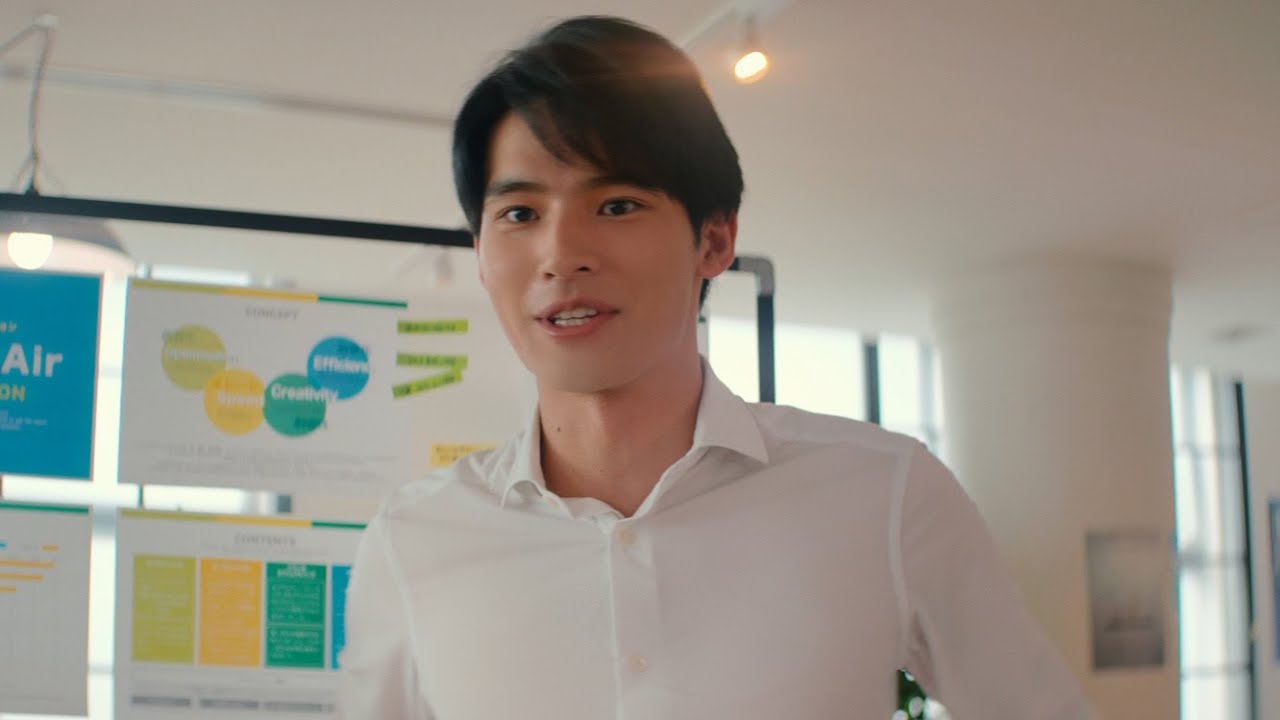 新CMは「ザバス飲むまでがトレーニング」編で15秒と30秒の2パターン。プレゼンする岡田さんの姿を見た先輩が、「もしかして、筋トレ変えた?」と目を見張る。岡田さんはそんな先輩を「ん?」と不思議そうに見返す……という内容。