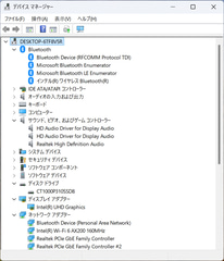 デバイスマネージャー/主要なデバイス。M.2 2280 1TB SSDはCrucialの「CT1000P310SSD8」。GbEはRealtek PCIe GbE Family Controller 2基、Wi-FiはIntel Wi-Fi6 AX200、BluetoothもIntel製