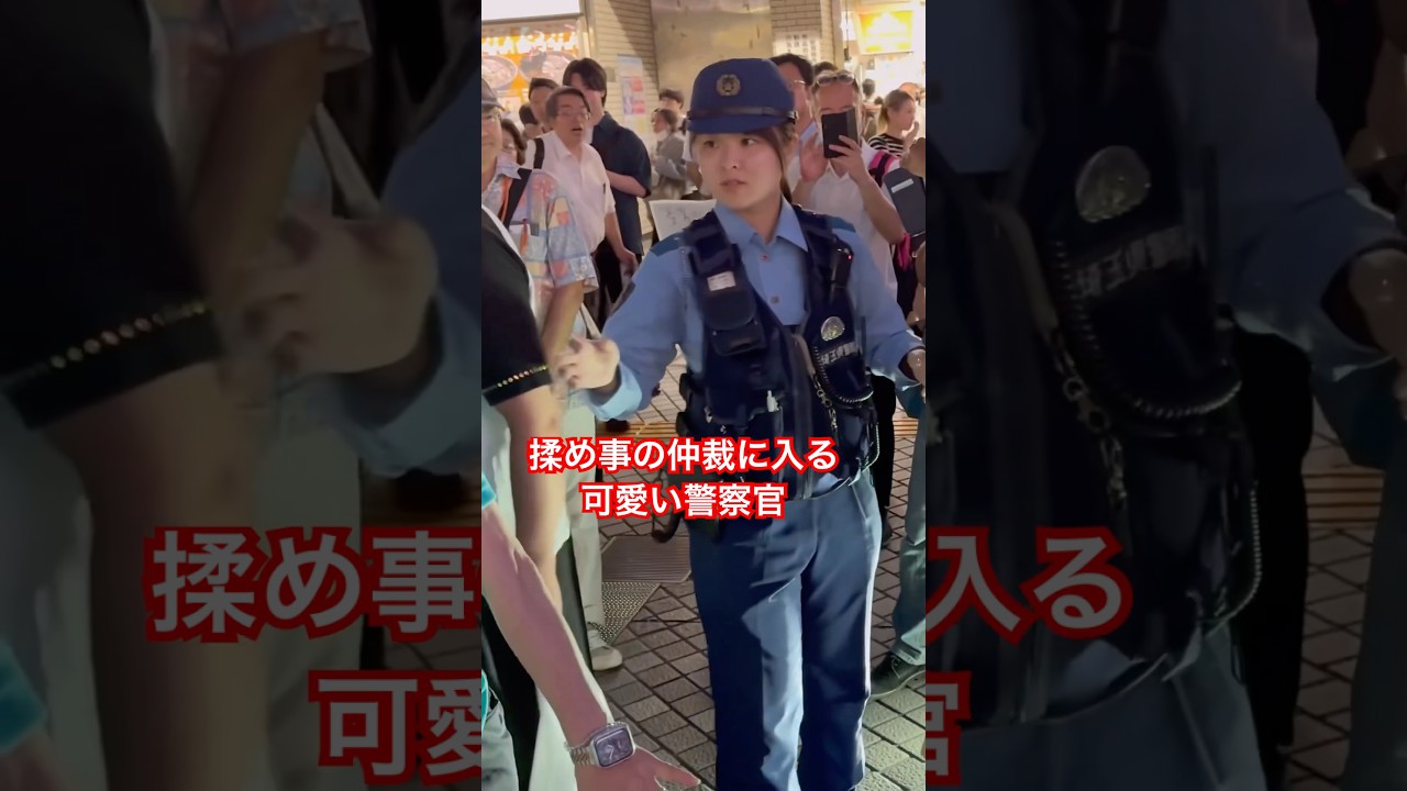 揉め事の仲裁に入るちょっと可愛い女性警察官。
