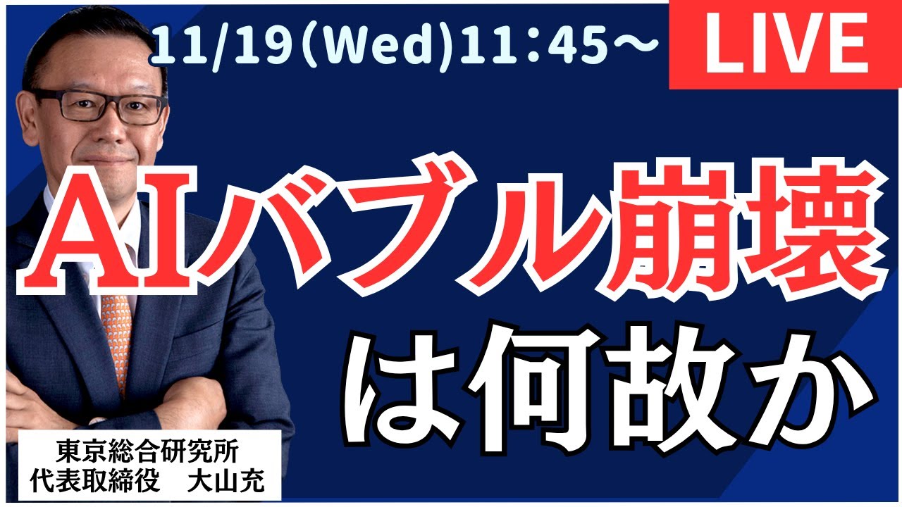 皆さん、こんにちは。 こんにちは。 本日も全場引け後のライブを行ってきたいと思います。 本日タイトルはAI バブル崩壊はなぜかという最近ね、ずっとずっと言ってきたところがテーマではありますが、 え、本日前田と共にあの新人の藤林さんも一緒にお送りさせていただきたいと思います。 はい。 はい。お願いします。 でははい。 絶賛キャンペーン中ですので、まず最初そちらのお知らせから行かせていただきたいと思います。 はい。はい。12月4 日まで超特別短期キャンペーンとして、え、先物オプションヘッジ戦略が今なら 30%オフ。10万3950 円引きということでですね。え、こちらが社長の 1 番良いヘッジ戦略ということですので、年内最後ということですので皆さん、え、ご覧になってただけたらなと思います。 初心者の方には電話サポートも行っておりますので、安心してあのお問い合わせただけたらなと思います。今先だとね、 すごい取れると言いますか、幅がありますからいいですね。 そう、幅あるよね。 うん。 今日だけだって、全部だけだって安値ね、 4万8235円から800 円ずれてるもんな。もう朝だけでもね。 はいはいはい。 まあ、まあでもずれ幅としては [音楽] 2%ぐらいだけどね。 はい。 ま、 昨日の分取り戻してないですもんね。 うん。取り戻してないしね。まあ、 2%ぐらいじゃね。 ま、どっことないので、ま、この後が問題なるんでね。 はい。 うん。2% ぐらいだとまあいいんだけど、これがね、また桁が違っちゃうと困るので、ま、ニューヨークもまだ桁が違ってないので はい。 ま、まあなんとか今日のあの決算発表までみたいな NVIA がどうなるかみたいな感じなんだけどまあでも AI バブル崩壊化のなんか流れになってるよね。なんか向こうのあのコメントとかいろんなのを見てくるとね 割と下げ寄りな方が増えてきましたね。 うん。そうだね。 だから、あの、あれじゃないけど、ウォールストリートのランダムオカーじゃないけど、その不正会計じゃないけど、ま、やっぱ不正会計ってどっかから来るんだろうな、最後はみたいに。で、今回はあれでしょ。 はい。 あの、AI、AI 関連のメーカーの、えっと、決算にちょっとあって、え、それがちょっと利益を水ませしてるんじゃない。 [音楽] ま、あの、減価をちょっといじ食ってるんじゃないかみたいなね、あの、ところから来てるんだけど、 まあすでにあのなんだろう。えっと、あのマネショートの人たちは空売りしてるんだよね。 [音楽] マネショート見たんだっけ?マネージショート見た? マネーショートは 見てない。マネーショートはね、見えなきゃいけない。 うん。 あの、マネーショートの人がもう空売りしてるので、 AI 中心に空売りしてるんで、ま、それなりのあの、ま、確と うん。うん。 ういう感じだよね。うん。 はい。 では、え、キャンペーンと共にですね、普段からお伝えさせていただいてますが、こちらフリーダイヤルになります。 はい。こちら 0120700800。 こちらライブ配信中です。 ああ、ごめんなさい。70088 失礼いたしました。こちら、え、ライブ中は社長対応できかねますが、ライブ配信終わりましたら、え、社長とお電話できますので、こちらにお問い合わせただければなと思います。 012070088 ですね。お願いいたします。 はい。 はい。 こちらお問い合わせください。ありがとうございます。はい。ではコメントも皆さん はい。 送っていただきありがとうございます。 ありがとうございます。先生、連日の配信ありがとうございます。こちらこそご覧いただきありがとうございます。昨日のライブでお話した通り、え、昨日の終わり値でダブルインバースを売り 1570 日経を買い、ライブを聞いて失敗したかと絶望していましたが、 494万9000 超で経を 1/3売りました。 この後本当の下げが来るのでしょうかと来ております。 うん。アメリカの主要な人たちは来ると言っている。 うん。おは わからないけどね。マネショトの人は来ると言ってもうあのプットとかやってんじゃないかな。 うん。 うん。仕掛けてると思うけどね。 うん。 海外が割と売り優勢でで、個人投資家の国内の方が、ま、会なのかなっていうところがうん。 うん。 そうね。でも結局何にもこうやってないてばないって、ま、ガソリンか 55 円下がったぐらいで、あの食品の消費税 [音楽] 0 っていうのもど、どうなるかみたいな感じで、今度は外食、外食っていうか外食業にとっては今度はマイナスでそれをどうしちゃうのかみたいなところでグダグダめ出しるからね。済みそうですまないんじゃないかなって感じはするけどね。 高一さんもなられる前は水派だったのになった後は 5 兆円あったらねやるよみたいなちょっと手放な感じになられましたもんね。 うん。うん。うん。うん。そうそう。で結局なんか知れないところで税金だけ上がってるんじゃないかみたいな感じだからまた同じみたいな感じになってくるとね。うん。 うん。で、もう