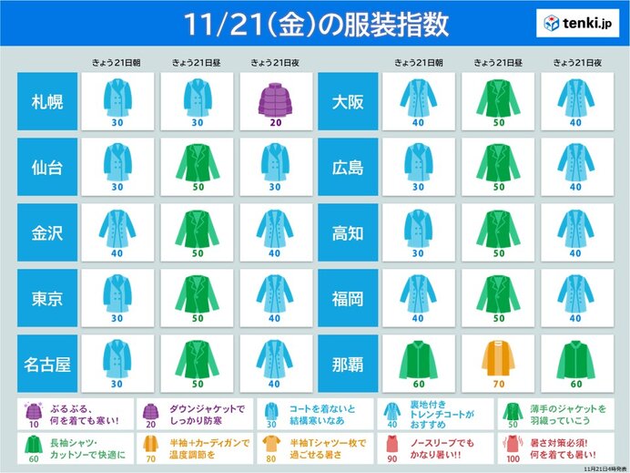今日21日の服装指数 北海道と東北は朝より夜のほうが冷える 重ね着などで調節を(気象予報士 戸田 よしか 2025年11月21日) tenki.jp関東は澄み渡る碧空で富士山もクッキリ 空気の乾燥に注意 ウェザーニュース21日(金)は低気圧がオホーツク海に進み寒冷前線が北陸や東北などを通過 その後は西高東低の気圧配置に 急な強い雨やひょうに注意を 山地では雪の降る天気に 雨・雪と風シミュレーション TBS NEWS DIG【北海道の天気 21日(金)】午後は寒さと雪が強まる…再び雪景色に!3連休は天気穏やか 日ごとに気温もアップ! Yahoo!ニュース北日本や北陸は雨や雪 落雷やアラレにも注意 au Webポータル