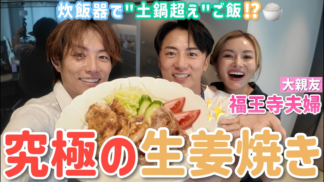 はい、たこと杉太陽です。今回は太陽飯シリーズでございます。さあ、いつもと、え、ちょっとね、キッチンが違いますけども、今日は、え、ある方たちとラブをしておりますので、早速呼んでみましょう。お願いします。 はい。 イエ、 福ファミリーでございます。お願いします。 邪魔します。 お邪魔します。ます。 こんにちは。 手明とあ野ちゃん。お願いします。 そうなんです。 そう。この2 人となぜコラボしたかと言いますと、まあ付き合いが長い。 2 人とも結婚前からもちろん知ってるし、テルに関しては親友やけど兄弟みたいな。だから、ま、太陽の兄弟飯というテーマで 思ってくれたら、 そうなんだ。 今初めて聞いた 兄弟飯。 そう、そう。そういう感じで行こうかな。 そう、そう、そう。で、テルがまた料理がむちゃくちゃうまいから簡単でみんなの家でも作りやすいけどむっちゃうまいっていう ハードル上げるけど大丈夫。 うんうん。 頑張りましょう。 あ、 いつものめんどくさいのマジや。 くそ2 人もね、YouTubeやってる。 はい。 私たちあの復事家の日々レジェンドオブザ じゃあ言って事件の日々ザレジェンドオブジというチャンネルをやらせていただいております。 このチャンネルがまたすごいんですよ。 え、すごいですか? いや、すごい。あのね、非日常をここまで味わしてくれるのかっていう いや、2人が日常や。 うん。 で、俺らからしたらこんな世界があんのかっていうすごいからほんまにあの遊びに来てください。 いや、ほんまにあの見たらあの世界観世界って広いなと思うよ。で、そこに特化してるからそのチャンネルにも僕が出まして料理しながら色々語って取ります。 思い出話もね思いも話ご覧ください。 ぜひご覧ください。 お願いします。 というわけで、え、まず早速スタートしましょうか。行きましょう。 はい、 スタート。 釣りも遊びも家族の日々もたらタラタラタたち。 はい。ということで はい。 ちゃんの ご飯も炊いてますけども。 そうなんですよ。 今回太陽飯シリーズに入れますから。 太陽飯シリーズに 俺も入るんだ。 はい。太陽の兄弟飯ということで 何を作りましょう? 今日はですねの前にや あ野さんがちょっとそワそワして いや、私だからもうちょっと吐けようか。けようや。 兄弟飯私関係ないやんて。 いや、違くて、あのうん。あの、挨拶させてもらったし、ちょっと足出まいになり、ちょっと天の声ポジション。 あ、じゃ、こちら側にマンション。 あの、出たり入ったりします。 わかりました。 ありがとうござい はい。 さ、そんな感じでですね。え、ありがとうございまして、あの、僕テルって呼ばれてますんではい。皆さんテルでよろしくお願いします。 もう僕とはね、28 年ぐらいの付き合いでございます。 そうです。ま、間もなく30年。 そやな。長いな。 立ちましたね、時は。 そうやね。 だから一緒に暮らせた時期とかもあって俺の実の弟と高夫と 3人で暮らせて だから本当はなんかもう家族みたいな そうだね。 そうだね。も甘いもっていうのをねきましたね。 そうそう。料理しながらテルもちょっとねパになって 2時のパパなんで で何作っていこうか。 はい。さあ今日はですねえ私は皆さんにも簡単にできる生姜焼き う いや生姜焼きってむずいよな。 生姜焼きま難しい感覚はもう結構僕も多分元々生姜焼きを研究した時に何百作ったんで 店やってたの はい。 結婚してちょっとしてからま息子が生まれたぐらいなんで 10年近く前ですね。9年前ぐらいかな。 そのね、メニュー名前何や? メニューの名前は生姜焼き定食。 なんかやった。 宮地豚の生姜焼き定食。あれ? 伝説の障害とかじゃなく? いや、違う違う違。 そんなあの俺っぽいやつやらへん。 やらへんみたい。そうだ。ちゃんとしてたんか。 そう。そのお店はあのちゃんとあの真面目にやってたお店なんで。 ま、俺ん中では伝説の障機。 そう。はい。 グジュやってたんですレンスがあってそこでもう 1 番のおすめメニューは何を作ろうかって考えた時にみんなが大好きなものにしようって言って それで生姜焼きっていうテーマに決まりそこからですよ研究が始まったの いや俺も食べに行ったけどマジでうまかったからそれを家でできるってことや はい家できますはもう終わっちゃったんですけどその後に自宅でも何回も作ってますけどま再現はできてると思い ご飯も今炊けました?え、ちょ、ちょ、僕のこだわりでちょっといいですか? あの、ご飯は炊けてすぐ混ぜろ。 ちょっと寝かすんじゃない? いや、いや、これもすぐ混ぜた方がいいです。 すぐ混ぜて 寝かせる意味です。 炊飯機だけど、全部水の量測るから。 測ってんの? うん。測る。 お米の量、水の量をマした後合わせた米と水の量を測ります。 毎回 毎回 毎回 だうちあのカップ捨てられちゃってないから私ワカップ 2カップでやらない。そう。 やら、やらない。や、 めんどくさ。 めどくさいよね。 テルの炊き方って炊く