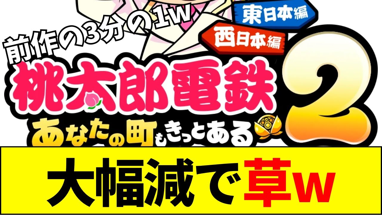 前作から大幅さすがにワろた。これさ、 まずいんじゃないか。この一言が全てを 物語っています。国民的パーティーゲーム の最新作桃太郎伝鉄にの初集販売本数が 発表されましたが、前作桃鉄はの約13と いう結果にネット上では大きな波紋が 広がっています。スイッチと新型スイッチ 2の合計で14万7513 本という数字を世間はどう受け止めたの でしょうか?まずは今回の結果を厳しく 見る批判否定的な意見から見ていき ましょう。前作から大幅さすがにワろタ これさまずいんじゃないか。変な売り方し たのが完全に急になったな。国内版5年 ぶりだったのに短期間に出しすぎ。正直 ワールドが余計だった気がする。桃鉄は いくつもいらねえもん。誰が見ても東西に 分けたのは大失敗だよ。ま年に極まりすぎ やな。着々と終わりに向かってる。ひどい 激を見た。300万とか言ってた頃が 懐かしいな。連発しすぎるから売上が 落ちる。こういうとこがコなミよな。単純 に高いし分かりづらいってのもある。 何東日本西に本手乱発によるシリーズの マネりカや東西分割という販売戦略への 批判が相ました。次はワールド右半球左 半球編だろうといった皮肉の声も上がって います。こうで今回の売上でも十分な成功 と見る賛成小さ系の声も届いています。 年末年始で50万は余裕で超えると思う。 これでもパーティーゲームだからまだマし だな。2匹目の土上にしては頑張った方か も。PS5でのコナミの最高売上超えてる けどな。ポケモンとカービーに挟まれて この売上は強い。初動は振わなかったもの の年末での巻き返しを期待する声があいつ ました。中立分析定の意見では販売ペース やゲームの特性を指摘する声が多く見られ ます。分割のダウンロード版あるとはいえ や弱いな。同じゲームはまあ何個もいらん よな。1世代1本でよくね。1本あれば 10年楽に遊べるからな。ハードごとに1 本で足りる人多いやろ。出すのが3年 早かった。そしてスイッチ一般はいら なかった。コナ禍という異質な時代故えの 3物だったのがはっきりした。初動下がっ てるのは痛いが結局はじわれするかどうか だな。桃鉄のようなパーティーゲームは1 ハード1本で十分という観えや発売ペース の速さが影響したという分析の声が多数派 を占めました。コメント全体としては桃鉄 の販売戦略と発売ペースへの疑問が大きく 前作の売れすぎた反動だと冷静に分析する 意見も目立ちました。あなたはこの初集の 結果どう評価しますか