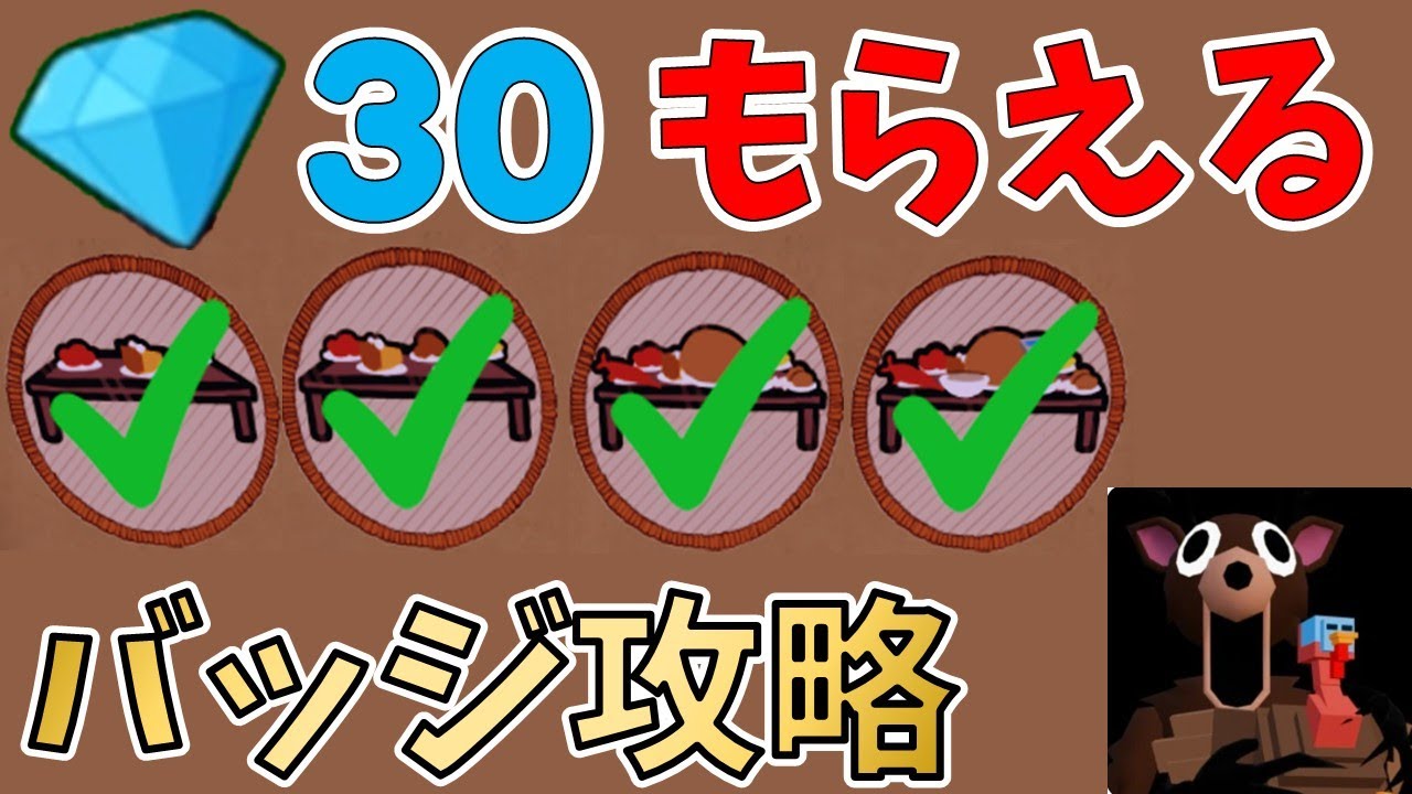 [音楽] 皆さん、こんにちは。今回は 99 ナツインザフォレストを紹介していきます。 最新アップデートで紙イベントが来たぞ。 まずはアップデートパーティーからです。 アップデートパーティーの参加方法はアップデート 30 分前に接続するとロビーから参加できるぞ。 毎回ダイヤ20個前後の配布があります。 結構美味しいよな。 ちょ、これは何でしょうか?子供救室が連打しているのですが、これもイベントなのか、それともバグなのでしょうか?分かる人がいたらコメント欄で教えてくれると嬉しいぞ。 今回も20個のダイヤ配布がありました。 1 つ焚き火の中にダイヤが落ちてしまい、回収できませんでした。アップデートパーティーに参加いただきありがとうございました。 アップデート時間になるとイベント専用のムービーが流れるぞ。 いつものカルキストの2 人や家具証人、妖精さん、様々な人にディナーの招体が配られています。 フルバージョンを見たい人はロビーから確認してくれるといいぞ。 感謝祭チャレンジが始まります。クエスト系なのでしょうか? ロビーに戻ってアップデート内容を確認していくぞ。 新しいクラスは増えていませんでした。ここまで来ないのは珍しいですね。 バッジが4 種類増えているぞ。感謝祭チャレンジで進めた数でもらえるみたいだ。 このクエスト悪計ではなくて 1 ゲームで最大どこまで進んだかになります。 そだと難しいから複数人数で挑戦することをお勧めするぞ。 初見でのチャレンジです。 クリアできるかな? お、早速新しいのがありますね。これはテーブルでディナーに招待した人に使ってもらいます。 ここにクエスト内容が書いているから順番通りに作っていくだけだ。まずはクロックポットだな。 メンバー全員で協力しながら進めます。 新しい建物もできていますね。 この建物は必ず宝箱があり、入り口にある棚には家具があるし、庭に庭には食料やアイテムが複数落ちている。 ハロウィンイベントでもそうでしたが、イベントの建物で食料が確保できるとその分進めるのが楽になっていいですよね。 この作物や動物は後でクエストで必要になるから時間がある時に集めてもいいぞ。 イベントの建物の位置は地図で確認できます。複数箇所あるのでお腹が空いたら立ち寄ってもいいですね。 クロックポットを作ったら次からはシ中作りになるぞ。 鍋に入れる材料は看板に表示されています。コーン 2つとポテトでしょうか? コーンは畑から取れるし、ポテトはイベントで新しくできた建物の庭で収穫できるぞ。 大人数でシュを作っているとたまに素材を間違えて入れすぎたり事故になる可能性があるから慎重に進めます。 クエスト前半の素材はまだ簡単に集められるものが多いが後半は 1度のミスで間に合わなくなるぞ。 次はターキーレッグを3 つです。ターキーはイベントの小屋の庭にいます。 ターキーは何気にHP高めだ。ドロップは 2 つあって、ターキーレッグとスタフィングだ。 次はそのスタフィングを3 つです。なかなか出ない場合もあるので毎日ターキーは倒しておくとすぐクリアできると思います。 1 度倒すと次の日にならないと復活しないし、このチャレンジは日数制限があるから効率よく進める必要があるぞ。 次はチリオ2つとスタフィングを1 つですが、看板に今日の夜にお客さんが来ると書かれています。チリの種を購入できていないのでここでストップですね。 夜になると音楽が流れ出し招待したお客さんがやってくるぞ。 椅子に座って食事をします。食べ物は強力で作った料理ですね。もっと進めればさらに人が集まるみたいです。 食事中にお客さんの水がなくなるから補充してあげることができるぞ。結構面白い。 食事が終わると看板に結果が表示され、テーブルの上に報酬の宝箱が出現します。 合計10 回クリアが必要か、新しいバッジも 2つゲットした。8 回クリアで最上位のイベント宝箱がもらえるみたいです。 ゲットしたイベント宝箱はテーブルの上に出現するから長押しで開封するぞ。 なんか強そうな武器来た。 他にも隕石武器やアーマー強化、サイス、刀んでも出てくるぞ。 もう1 度やり直して最挑戦です。クエストで必要な素材は固定みたいなのでメンバーで手分けして進めていきます。見づらくて申し訳ないが次はポテト、ケーキパンプキンだ。間違えて食べてしまうと最入手がこんなんだ。 知らないとうっかり食べてしまいそうです。 次はメカジ1匹とチリ2つだな。 ここでまさかの魚です。 なんとか釣り上げて次は最後のクエストだ。 メカジさんはレベル1 の竿でも釣り上げることはできました。最後はこちらリブ 2つとパンプキン1 つになります。ここでパンプキンの在庫がなくなってしまって 2回目の挑戦もしくも失敗だった。 9 回クリアなのでイベント宝箱も全種類もらえました。 何気にいいアイテムたくさんあるよな。 3 回目の挑戦で無事全部クリアしました。看板の表示が残り日数のみになればクリアみたいです