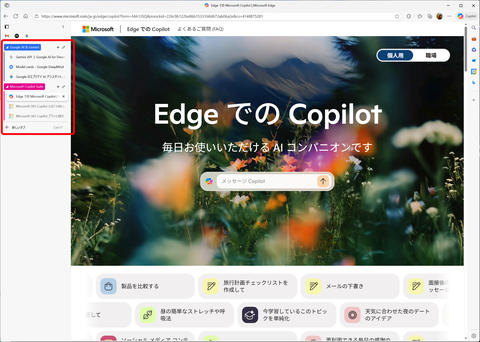 普段、たくさんのタブを開いて作業することがある場合は、Copilotの力を借りてタブの情報を整理できる。