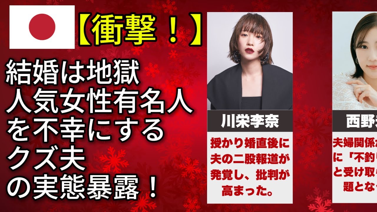 これらの女性有名人の役立たずの夫たちは、彼女たちを悲しませるために何をしたのでしょうか? (松田聖子・佐々木希・杏) は、輝かしいキャリアを持つ女性芸能人たちを裏切り、苦しめた夫たちの実態に迫るドキュメンタリーです。 不倫、借金、モラハラなど、世間を驚愕させた「ダメ夫」たちの数々の行動。なぜ彼女たちはそのような夫を選び、そしてどのように苦難を乗り越えてきたのか? 本作「これらの女性有名人の役立たずの夫たちは、彼女たちを悲しませるために何をしたのでしょうか? (松田聖子・佐々木希・杏)」では、スキャンダルの裏に隠された涙の真実と、強く生きる女性たちの姿を徹底解説します。