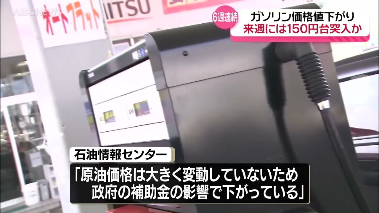 秋田県内の最新のレギュラーガソリンの平均小売価格は1リットル161円40銭で6週連続で値下がりました。補助金の引き上げにより、来週には約4年ぶりに150円台となるかもしれません。