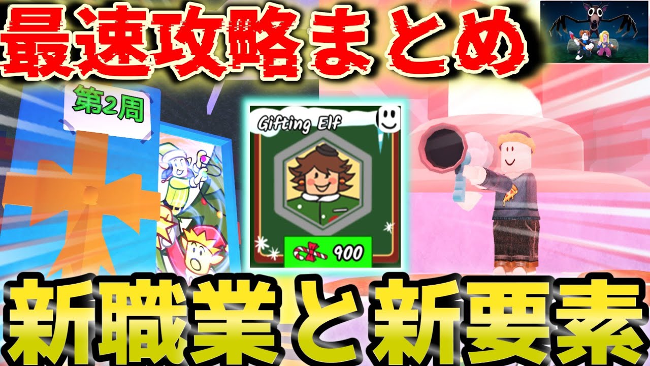 さて皆さん、クリスマス第2 弾がやってきましたが楽しんでいますか? 今回は霊夢アプデさえ参加してないが、まあ内容自体は楽しめるからな。早速見ていくか ですね。では参ります。ってことで、まずはこちら。ついに新食用が来ましたが なんかセールしてない? そうなんです。なんと今回20 ダイヤのセールを行っており、セールシステムが導入されています。 あら、つまり今後他の職にも適応されるかもしれないから安く食業が手に入るようになる可能性が出てきたってことね。 うん。だがどうだろうな。 私たちみたいな原価で買ったプレイヤーから不満が続出しそうな気がするな。 ま、その辺運営さんがな何とかしてくれますよ。で、今回はこちらの職も買ってアプデの紹介をしていきましょう。あ、あとですね、ショップの方にも新たな色が追加されており、 900 キャンディでギフティングエルフってのが増えてますね。 900か。小山またW イッチと同じで入手が難しい人が出そうなラインだな。 さて、そんじゃ早速ゲームに行きましょうか。さて、ゲームが開始しました。 お、新職業なんか面白いことになってるね。 さ、この職についての解説はまたベッドを行いますが、クリスマス版エイリアンって感じの武器を持つ 80ダイヤとしては破の性能の色ですね。 弾薬は30 発だけれど、男数表記されてるだけでゲージ回復みたいな性能の連車型の無限武器で瞬間火力としてはかなり侮れない火力してるわね。 これまた強いのが出たな。 新食用量についてはこのくらいにしてアプで内容に触れていきましょうか。まず周辺にこんなエリアが追加され、なんか 12と書いてありますね。 あ、本当だ。これは周辺の敵がクリスマス の電色をつけてたりするので倒すことで 電色を手に入れることができます。ちなみ に敵以外でも木にもついてるので 切り倒して回収し12個集めたら地面が 氷みたいになってる地帯に雪がかかって ない気があるのでその気に電を貼り付けて いきます。一気にクリスマス。 そしたらこれを12 箇所を行うとアニメーションが表示され。 てな感じで、第1 シは大違いで一気にクリスマスが始まります。 街には人もいるし、明るさもあってなかなかいい空間だよな。 さらに最大の要素として地面が青い部分は建築可能エリアになり、なんと町に建築をしクリスマスをもっと楽しむことができます。 お、つまりこのエリアがセーフゾーンになったの? いえ、そういうわけではないですね。普通に仕掛きますし、敵も普通に入ってきます。 あら、まあ、 とはいえ、アプデ直前はバグだらけなのもいつもですし、もしかしたらセーフゾーンになる可能性も普通にあるので、今はただ建築できるよ。 明るくてクリスマスいい感じだねっていうところですね。 ほう。まあ私はそういうの大好きだぞ。 そりゃまあそうでしょうよ。ちなみにちょうどいいので新食量の新武器で鳥で攻略もしましたがこれ完全にエイリアンですね。 あれ ただ弾がばらけるのと弾が落ちるのと速度バフがないので若干違いがありますがその辺は後日検証動画でも出しましょう。あ、ちなみに新武器ですがクリスマスプレゼントからも出てくるので使用感を試したい人は開けてみるといいかもしれませんね。てなわけで今回は短いですがここまでだいぶ新要素と雰囲気がいい。 今回のアプデ個人的には非常に好きなのでみんなも新食料、それから雰囲気を楽しんで第 2 週までクリスマスをエンジョイしましょうね。この動画が面白かったよって思ったらチャンネル登録よろしくね。じゃ、またね。