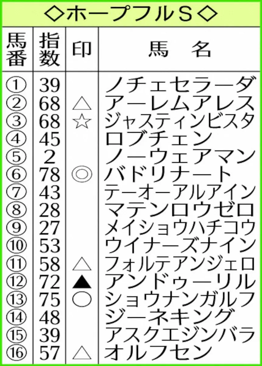 今年のホープフルSは実力拮抗(きっこう)の好カード。AIがはじき出した上位馬の接近した指数が、その難解さを示している。