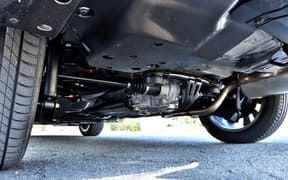 左が2WD(FF)のリア床下で、右が4WDのリア床下。4WDはフロントからプロペラシャフトを介してリアに駆動力を配分しているのが分かる。合わせて排気マフラーのレイアウトも変更されている