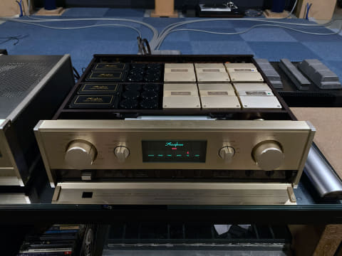 まずは音が気に入っているということ。全体にハイスピードで鮮度が高く、高域の鮮鋭感や低音の馬力は他のプリでは聴けない。多少の色付けを感じるところもあるが、最近の機器は総じて低歪みで優しくクリアで、僕の耳には物足りないのだ。また同クラスの新品のプリアンプは予算的に導入が難しいという世知辛い問題もある。
