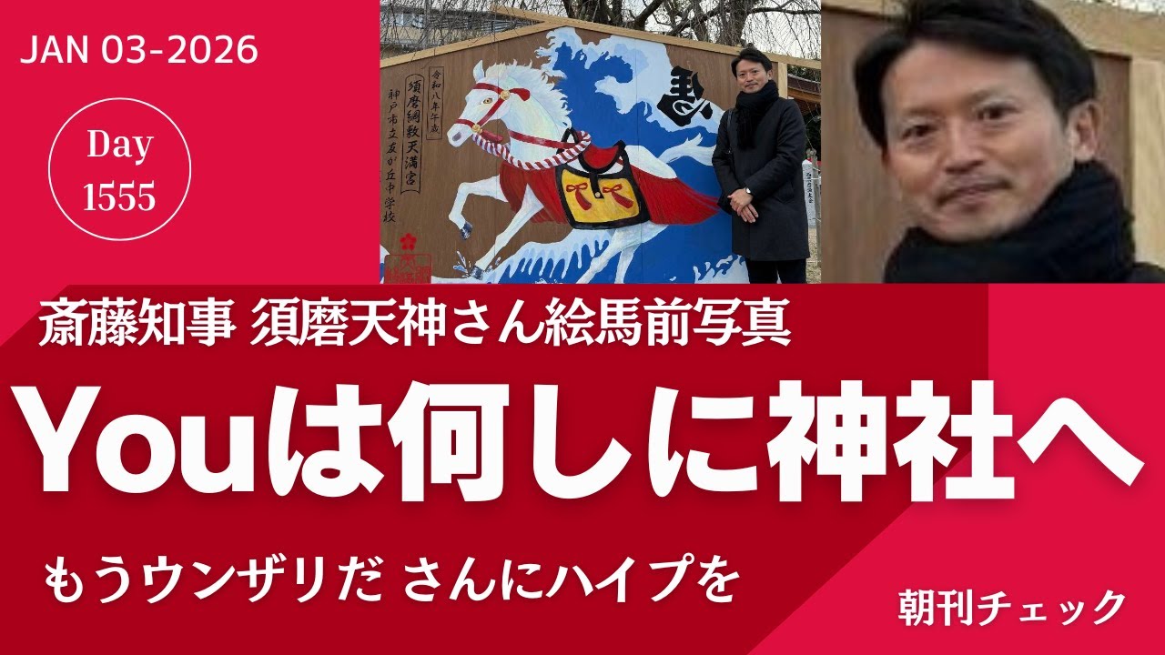 【斎藤チェック】昨日に続いて「もうウンザリだ」さんが須磨の天神さんで見かけた初詣を装う斎藤知事との遭遇について、後編の動画が公開されましたのでご紹介します。