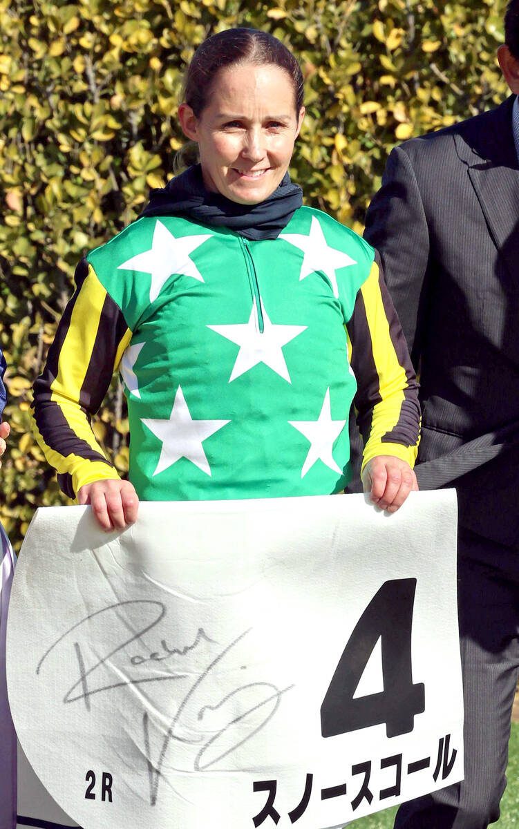 スノースコール騎乗で勝利したレイチェル・キング騎手(カメラ・荒牧 徹)
