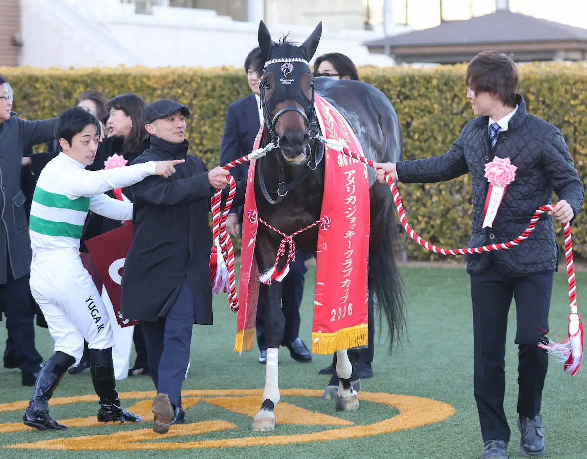 <中山11R・AJC杯>レースを制したショウヘイと川田(左)(撮影・村上 大輔)