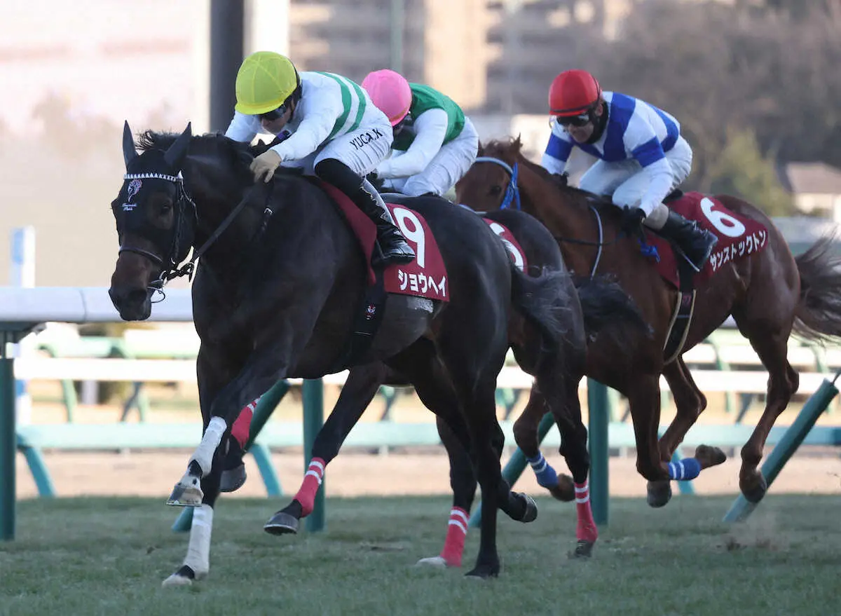 冬の中山最終週を飾るG2「第67回アメリカジョッキークラブカップ」が25日、中山競馬場で行われた。川田将雅(40)騎乗のショウヘイが4番手から押し切って重賞2勝目。勝ちタイム2分10秒8は05年クラフトワークの勝ちタイムを0秒6更新するレースレコードとなった。4歳馬は今年、4歳以上のJRA重賞6レースで4勝目。前日の小倉牝馬S(ジョスラン)に続く勝利となった。京都で行われたダートG2「第31回プロキオンS」はロードクロンヌが惜敗続きに終止符を打ち、うれしい重賞初制覇。フェブラリーS(2月22日、東京)の優先出走権を獲得した。