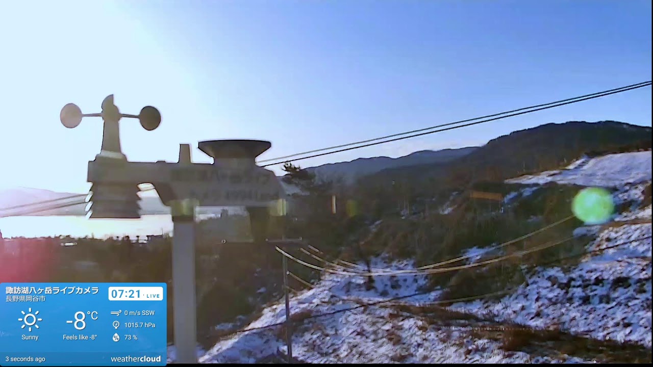 #ライブカメラ#諏訪湖#八ヶ岳#長野県#お天気#Livecamera#上諏訪#下諏訪#茅野#岡谷#温泉#八ヶ岳登山#蓼科山#登山#ハイング#Livestream#諏訪湖花火#諏訪花火#御神渡り#八ヶ岳方式#気象計#気象情報#風速#気圧#湿度#雨量