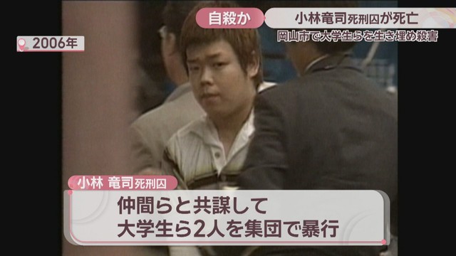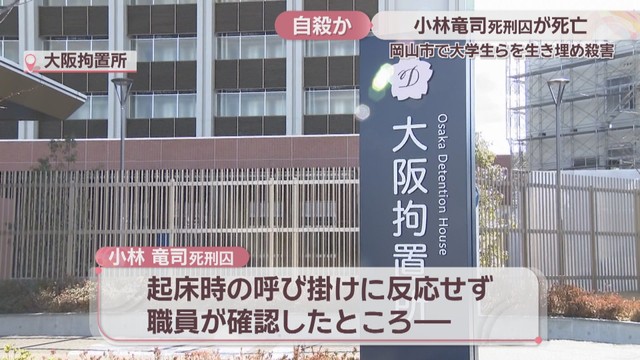 2006年、岡山市で大学生ら2人を生き埋めにして殺害したとして、死刑判決が確定した小林竜司死刑囚(41)が、収容先の大阪拘置所で、死亡しました。自殺とみられています。