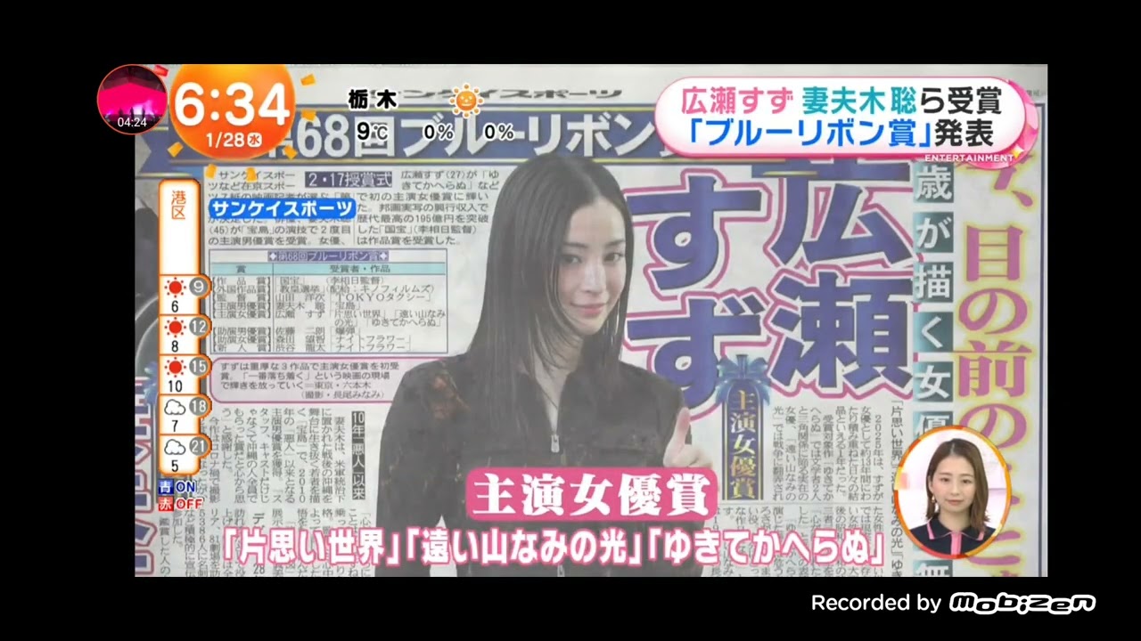「めざましテレビ」第68回ブルーリボン賞!「国宝」(李相日監督)は作品賞を受賞。主演男優賞は「宝島」の妻夫木聡、主演女優賞は3作品で広瀬すずが獲得! 「めざましテレビ」第68回ブルーリボン賞!「国宝」(李相日監督)は作品賞を受賞。主演男優賞は「宝島」の妻夫木聡、主演女優賞は3作品で広瀬すずが獲得! 広瀬すず