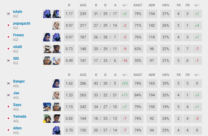 CGZは1マップも落とさずに4連勝と圧倒しました。Main Stageでも上位進出が期待できそうです。2位争いはAGLがIGZとの直接を制しています。この試合は京valoチャンネルTwitchで放送(※アーカイブ削除の可能性あり)されていましたが、AGLはこの日2連戦という厳しい日程ながら、チームとして上回った印象です。