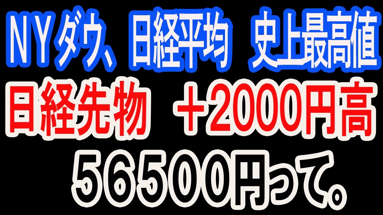 2/7【株式速報】NYダウ、日経平均先物揃って史上最高値。さらに2,000円高。これがインフレ相場だ。