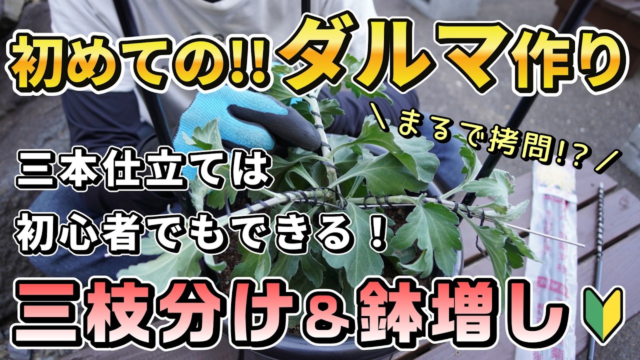 #菊作り #大菊 #ダルマ作り #三本仕立て #三枝分け #誘引 #鉢増し #突き固め植付法 #園芸 #ガーデニング